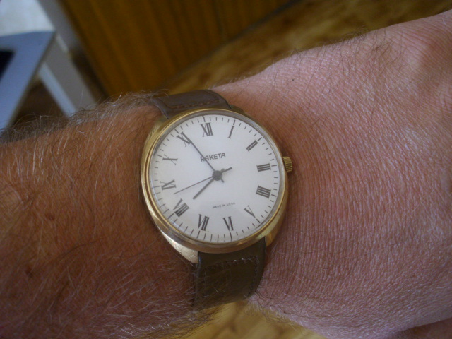 Rakieta Rzymianka 19 kamieni. Zegarek na punktualnym chodzie .Wymiar bez koronki 39mm od uszka do uszka 41mm. Koperta pozlacana taka sama jak w Rakiecie Big zero. Sprzedaje razem z brazowym paskiem .Cena 130 zl z wysylka listem poleconym piorytetowym.
