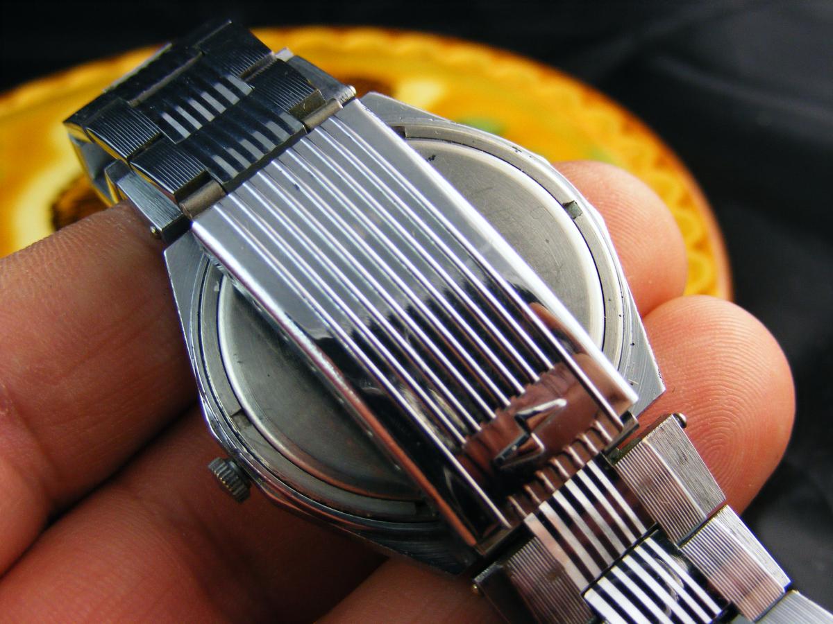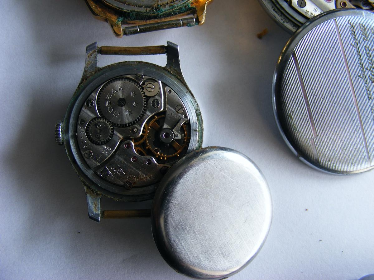 5.Mołnia. Stan jak na foto, koperta całkiem całkiem, tarcza praktycznie idealna. Pasy na mechanizmie się zgadzają. 2-52 rok. Dekielek CHYBA nieoryginalny, ale tego nie wiem...