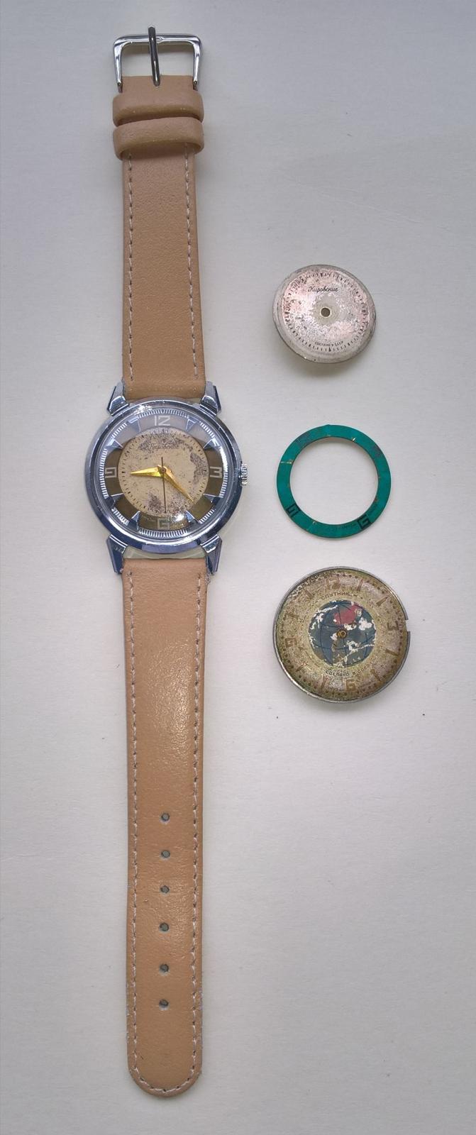 1. Wostok 17 kamieni, mały sekundnik wypadł ale jest za szybką, na chodzie, wizualnie 6-7/10, pasek skóra naturalna