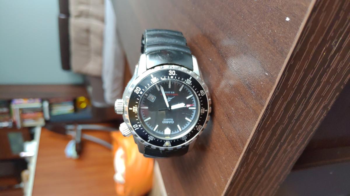 Stan zachowawcze 7, ale na 8 pewnie by się też mógł załapać. Szkło oczywiście czyste, dekiel i koperta też, jedynie pasek wyślizgany i trochę porysowany.