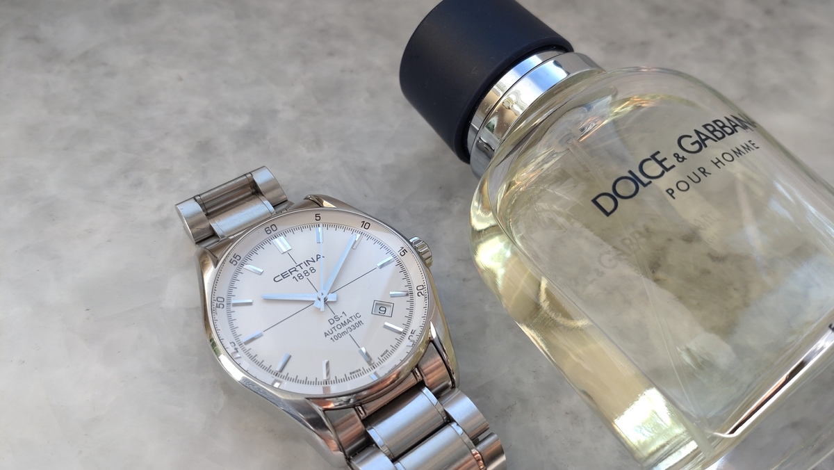 Podczas urlopu towarzyszył mi taki duet. O ile zegarek sprawdził się świetnie, to woda toaletowa zawiodła całkowicie...