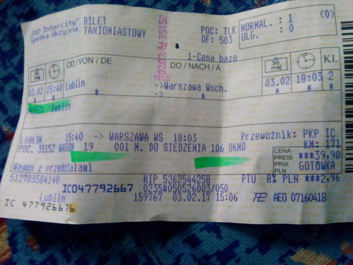 Siedem przejazdów w cenie pięciu ( Lublin Warszawa to 39,90pln *5= 199,50pln)