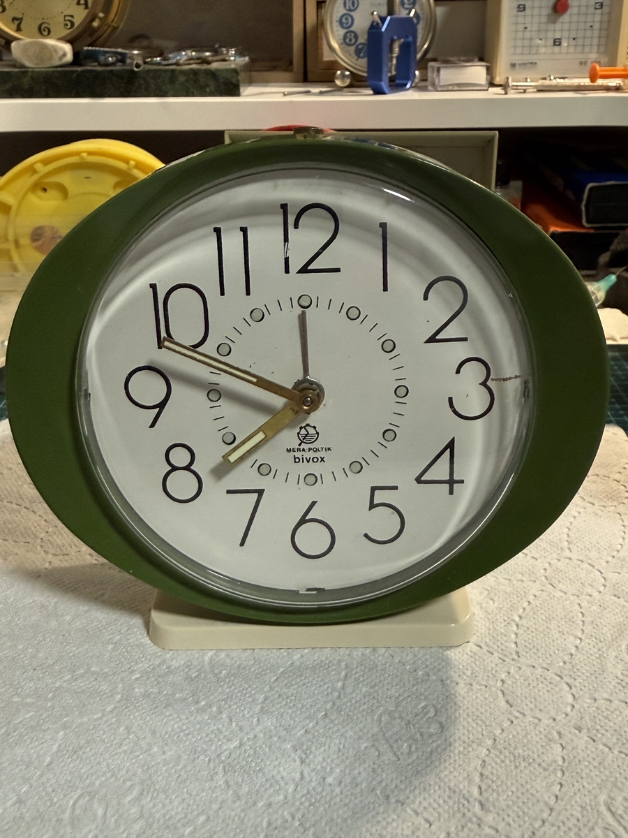 To na zakończenie Dnia Niepodległości taki budzik ŁFZ z początku lat 50-tych. Numer pięciocyfrowy. Dzisiaj naprawiony.