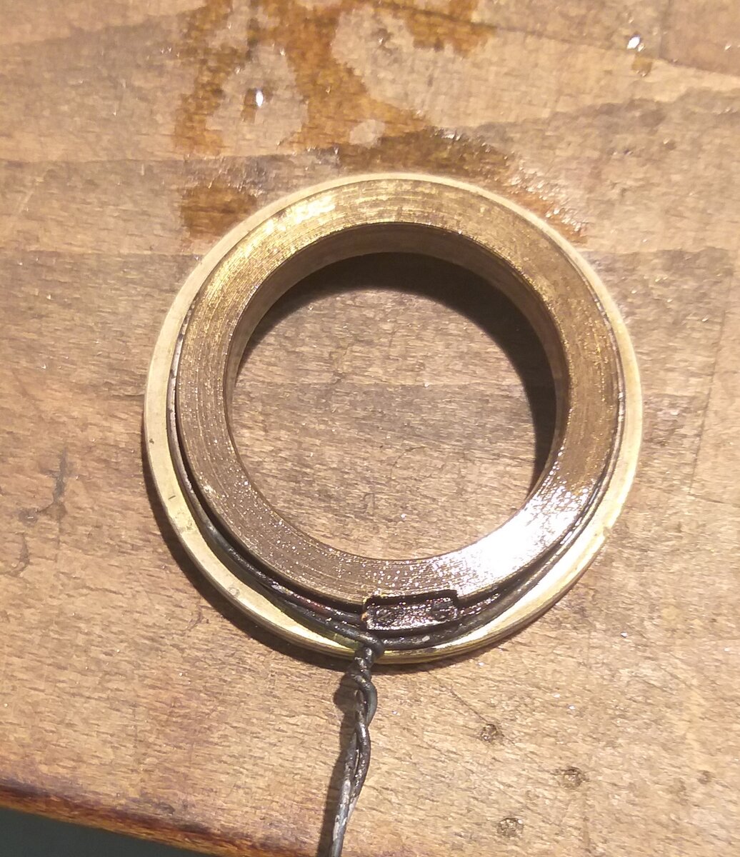 Przygotowane wcześniej mosiężne pierścienie z nawiniętymi prętami gongów.