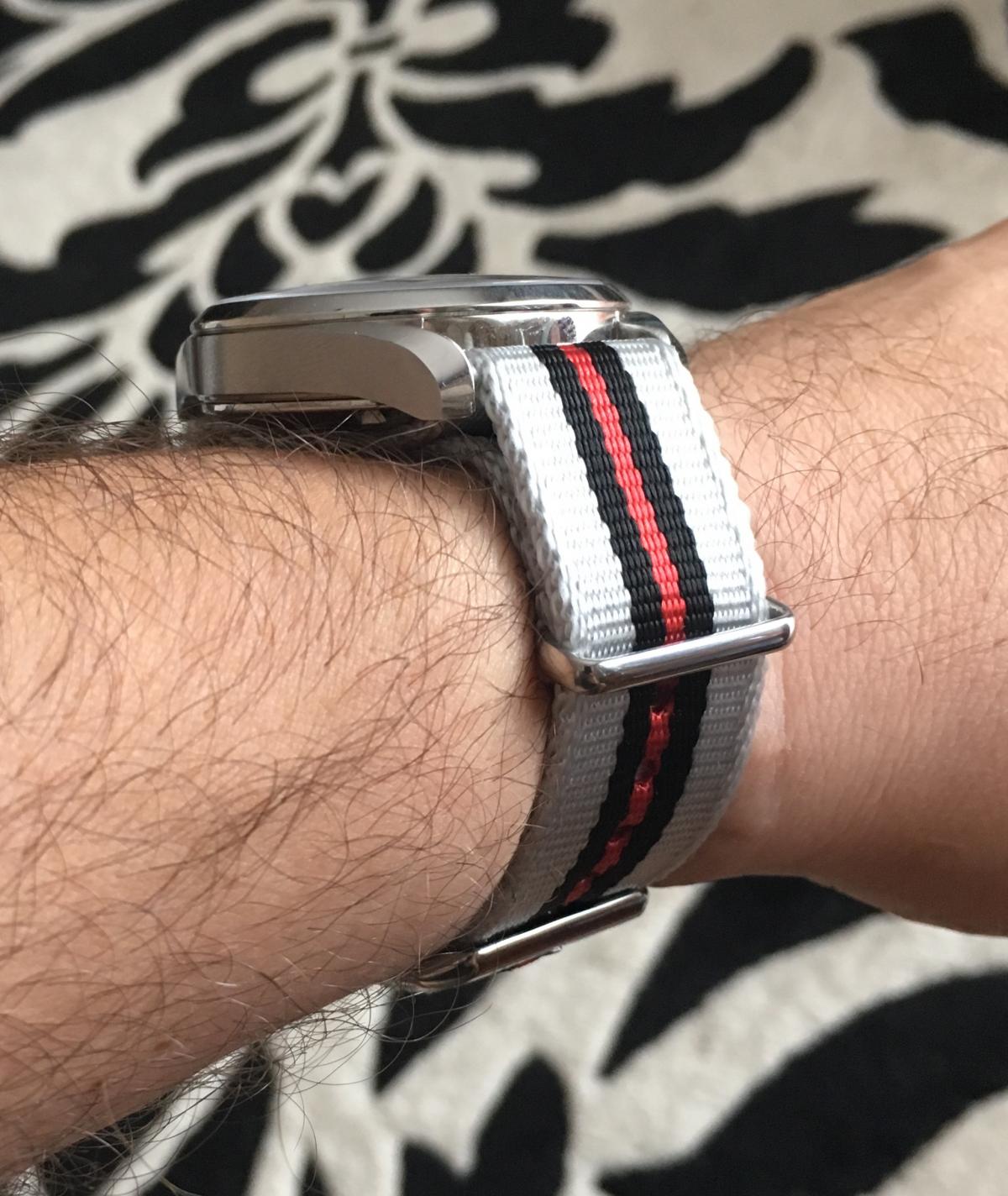 2. Jakość dziurek bardzo dobra, nie są tak daleko poprowadzone jak w innych nato, kończą się 5,5 cm od końca paska. Rozstawienie metalowego osprzętu też jest dość duże, chodzi mi elementy pomiędzy którymi jest zegarek, tutaj metalowe części są dość daleko od uszu zegarka. Same metalowe elementy są  ok, bez wow i ah ale przy tym eleganckim stylu są takie jak potrzeba. Jeden z tych elementów jest ruchomy co jest sporym plusem.