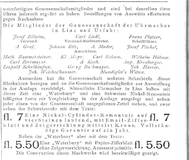 tarant 2979 #5 Napisano 4 Maja 2017 Waterbury wywołał sensację również w Europie, gromiąc Roskopfa i jego klony. Pojawili się sprzedawcy zbijający fortuny i masowa krytyka ze strony lokalnych producentów.Artykuł z końca 1887 roku. Ceny we florenach/guldenach austro - węgierskich. Od nazwy floren wywodzi się węgierski forint. Grupa zegarmistrzów ostrzega przed kupnem amerykańskiego blaszaka bez kamieni. Za 5,50 można było nabyć Waterbury z papierową tarczą, bez mechanizmu ustawiania wskazówek. Natomiast za 7 florenów nabyć rodzimej produkcji cylinder na 4 kamyczkach, z emaliowaną tarczą i ustawianiem wskazówek koronką oraz roczną gwarancją. Przeciętna kieszonka w srebrnej kopercie kosztowała wówczas około 60 florenów. I co ludziska kupowali? Spora część wolała zaoszczędzić 1,50 i kupowała amerykański cud Wezwanie do krucjaty przeciwko blaszanym Jankesom: 0 Pozdrawiam Piotr Tolerancja musi być nietolerancyjna wobec nietolerancji. Němec z Královce Udostępnij tę odpowiedź Odnośnik do odpowiedzi Udostępnij na innych stronach