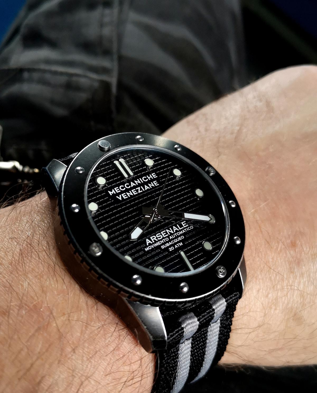 Na Bazarku ląduję zegarek kupiony kilka lat temu również tutaj, na Bazarku. Meccaniche Veneziane Redentore w rozmiarze 36 mm. Jeszcze pod starą nazwą i jeszcze w wersji ze szwajcarskim mechanizmem, który w terminologii Maccaniche Veneziane nosi nazwę caliber MV285, a w praktyce to szwajcarski klon ETA-2824. W tym wypadku STP 1-11. Jest ładnie zdobiony i z pozłacanym (tak w każdym razie słyszałem), customowym wahnikiem. Venezianico Redentore, które są dostępne w obecnej ofercie producenta nie mają ani przeszklonego dekla ani zdobionego, szwajcarskiego mechanizmu. W środku obecnych wypustów pracują Seiko NH36, więc łatwo się domyślić, że przeszklony dekiel nie byłby w tym wypadku zaletą.