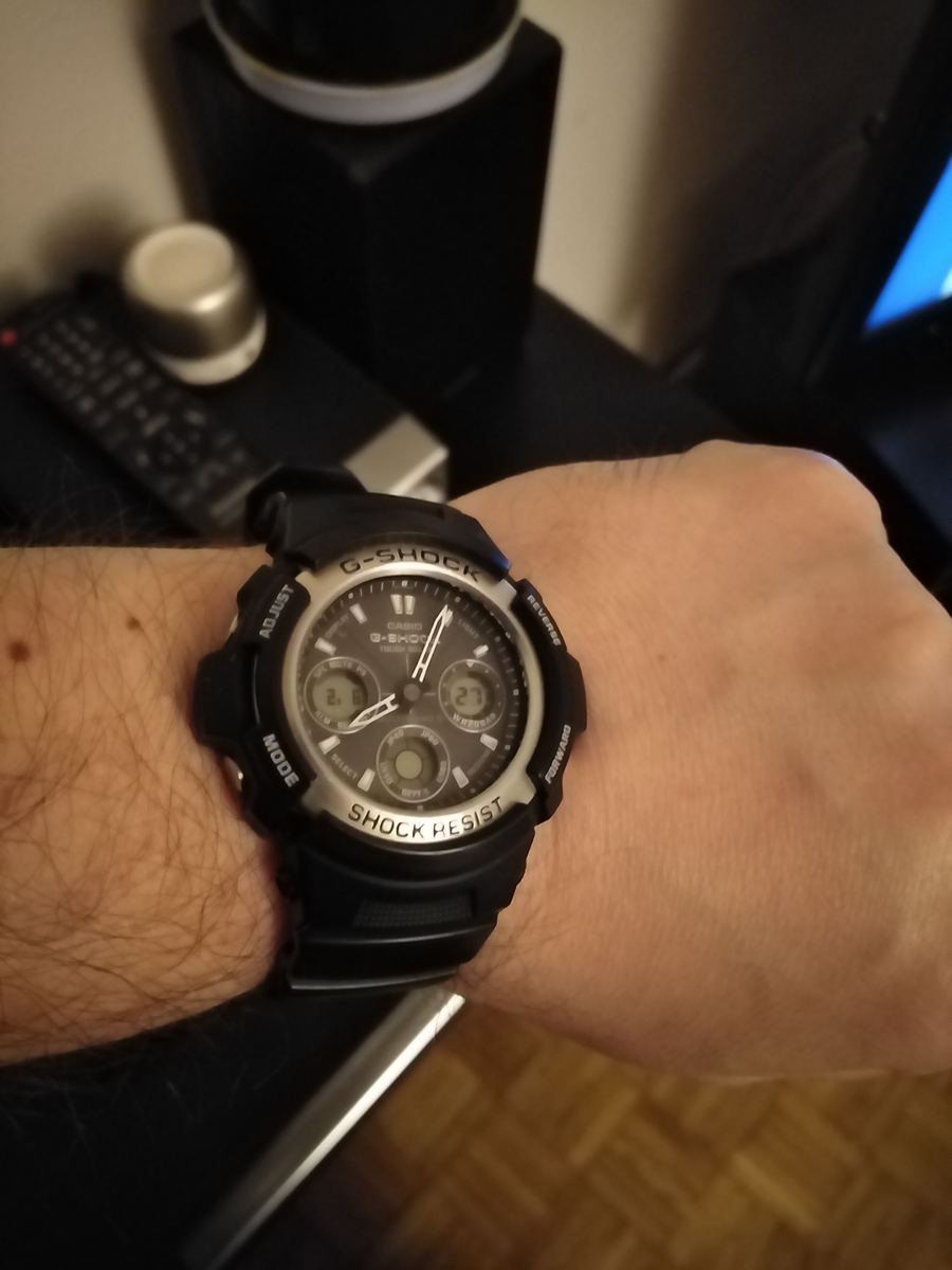 Panie i Panowie, Ladies and Gentlemen, Damen und Herren,  Дамы и Господа, Mesdames et Messieurs, Signore e Signori, Damas y Caballeros, 女士们先生们,  سيداتي وسادتي,  Wanawake na Wanaume:.....  hit sprzedażowy ubiegłych sezonów , zegarek komunijny jakby to nie brzmiało, ja również jestem szczęśliwym do bólu posiadaczem tego cuda inżynieryjnego Szanownej firmy Casio   :) oto i on :  Mały wśród Wielkich, Wielki wśród Małych - napędzany bateryjką za 3, 49 zł , pogromca szczupłych dłoni , odporny na prawie wszelakie głupoty właściciela- naznaczony jako G-SHOCK :