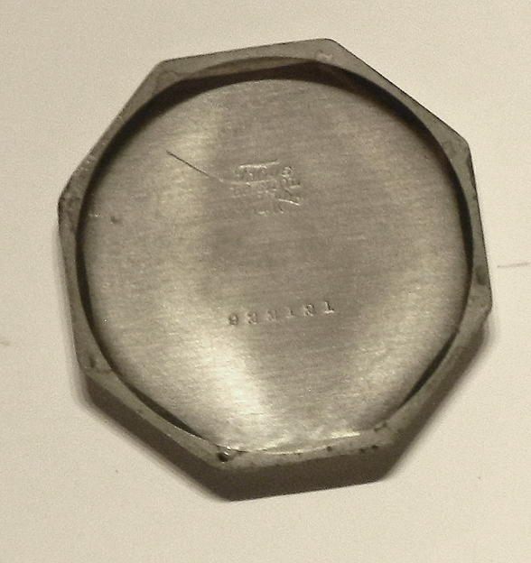 Brak sekundnika, tarcza wytarta, udało mi się tylko odczytać "17 jewels" i "super". Jest jeszcze litera "n", być może od "incabloc". Werk bez napisów, może ktoś również "wyczyścił", podobnie jak tarczę.