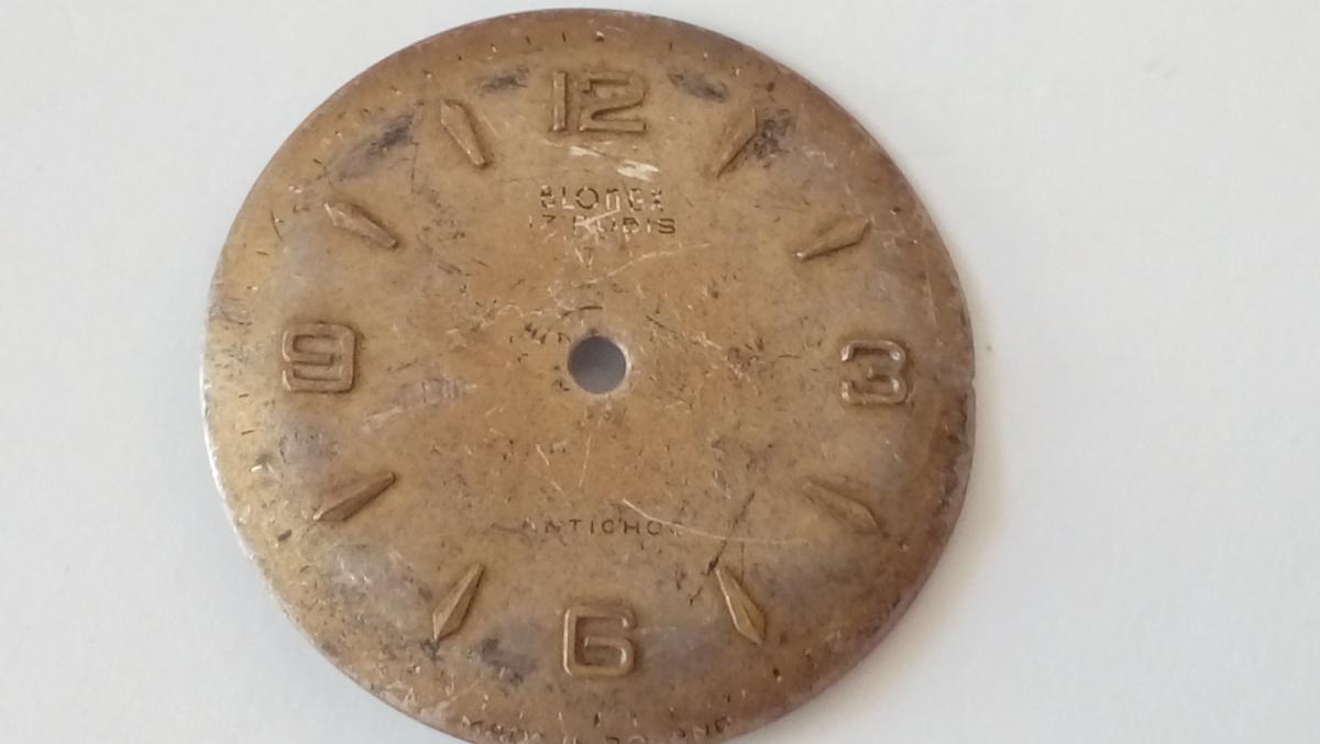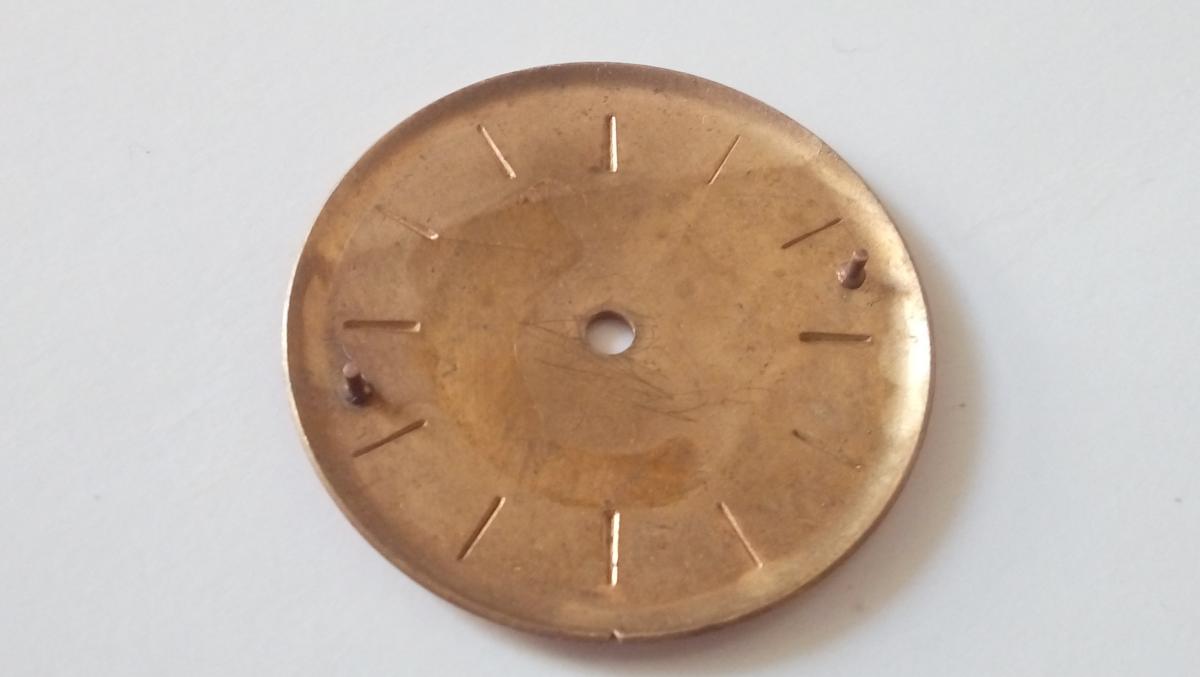 Mechanizm do czerwonej 12tki datowany 4-48. Jest niesprawny. Koronka się obraca, ale nie nakręca. Całość jest w kopercie, z tarczą i wskazówkami z nowszej Pobiedy. Kopertę chcę odzyskać, bo jest w ładnym stanie, tarcza jest kiepska, porysowana.