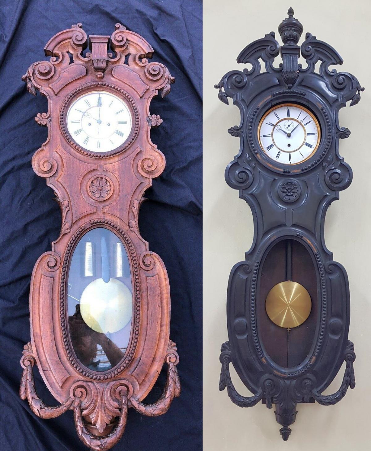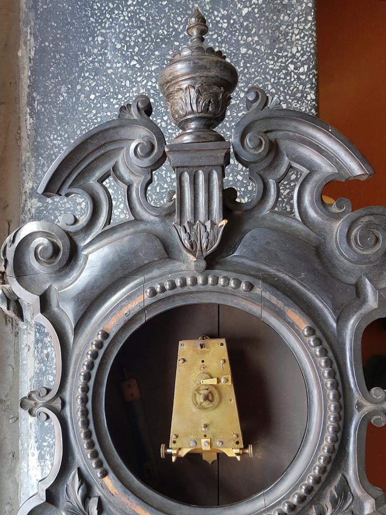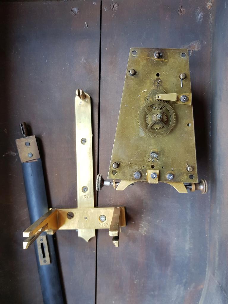 WueM 120 #7 Napisano 13 Lipca 2019 Na zatoce pojawił się powtórnie Lenzkirch o numerze 272 tys. co sugerowałoby 1877 r. U mnie natomiast wisi zagadka, w niemalże identycznej skrzyni, o numerze 267. Tarcza 21 cm, wysokość słuszna. Co to może być?Wieszak mechanizmu (też z nr. 267) jest ciekawy, bo dzięki poprzeczce umożliwia montaż mechanizmów o różnej wysokości płyt. Zegar nie nosi śladów jakichś ingerencji, wskazówki też oryginalne. Sekundnik opisany jako 60 sek. ale podziałka ma 80 kresek. Zegar z zatoki pierwszy z lewej, reszta zdjęć mojego. Jakieś sugestie? 0 Wojtek + Certina Club 2000 od lat Udostępnij tę odpowiedź Odnośnik do odpowiedzi Udostępnij na innych stronach