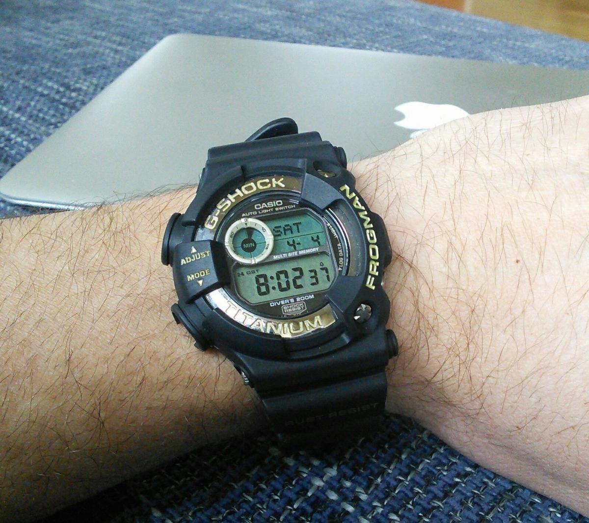 wytrych 7 #13249 Napisano 4 Kwietnia 2015 To i ja sie przylacze. DW9900-1b czyli tytanowy Frogman z 99 roku. Przyjechal w stanie nowka sztuka. Ktos kupil zegarek i przez 16 lat trzymał w pudełku - co za ludzie. Instrukcja nigdy nie była otwierana, jest nawet pachnący papierem japonski rachunek z lipca 99r. Miałem juz troche G ale ten zdecydowanie jest najfajniejszy. 0 Udostępnij tę odpowiedź Odnośnik do odpowiedzi Udostępnij na innych stronach