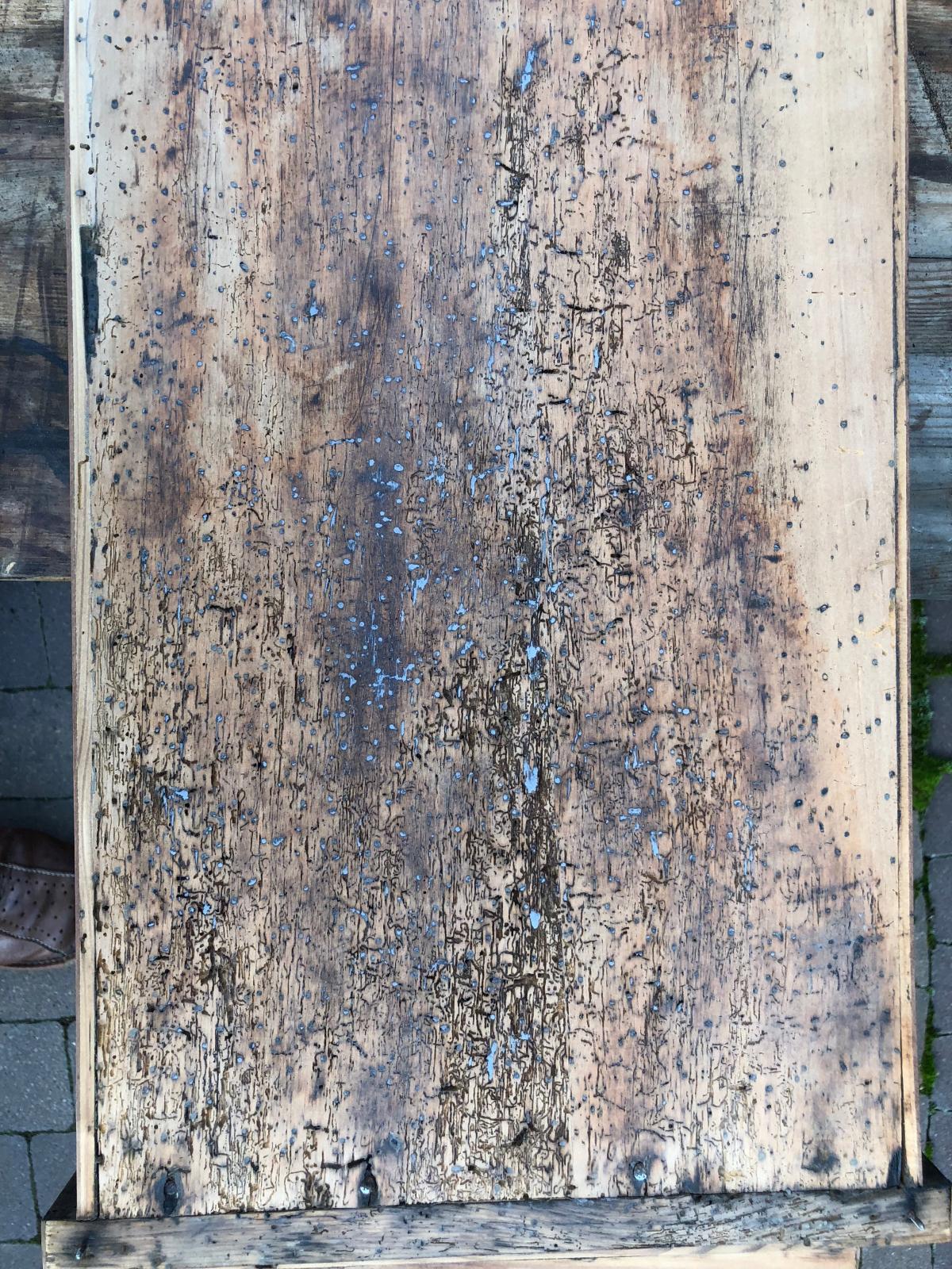 kiniol 2281 #4490 Napisano 13 Września 2019 (edytowane) Deska zaatakowana przez grzyb Stroczek Łzawy...Po impregnacji paraloidem rozpuszczonym w acetonie, warto odparować rozpuszczalnik powoli, np. we worku foliowym. Toluen paruje wolniej i spowalnianie odparowania nie jest konieczne, lecz ów rozpuszczalnik jest szalenie kancerogenny.Ten impregnat utwardza się poprzez odparowanie rozpuszczalnika, i ma niepożądaną cechę migracji, wraz z rozpuszczalnikiem do powierzchni utwardzanego elementu, więc często zdarza się, że twarda jest tylko warstwa wierzchnia 3-5mm, a środek nadal jest miękki. Paraloid B72 nie utwardza pyłu... Robiliśmy udane próby impregnowania żywicą epoksydową rozcieńczoną acetonem. Ta żywica sieciuje w wyniku reakcji w/w z utwardzaczem, więc nie migruje wraz z rozcieńczalnikiem... Niestety użycie wymaga wprawy, gdyż utwardzacz zwany "tecza" (trietylenotetramina) dodany w niewłaściwej proporcji, może się wypacać i powodować, że powierzchnia detalu pozostanie lepka i śmierdząca "myszami"... ale impregnowanie żywicą epoksydową działa fajnie, gdyż zespaja pyły... Edytowane 13 Września 2019 przez kiniol 0 Porządek na serwisie o niczym nie świadczy. Często najlepsze usługi świadczone są przez geniuszy w totalnym bałaganie… Udostępnij tę odpowiedź Odnośnik do odpowiedzi Udostępnij na innych stronach
