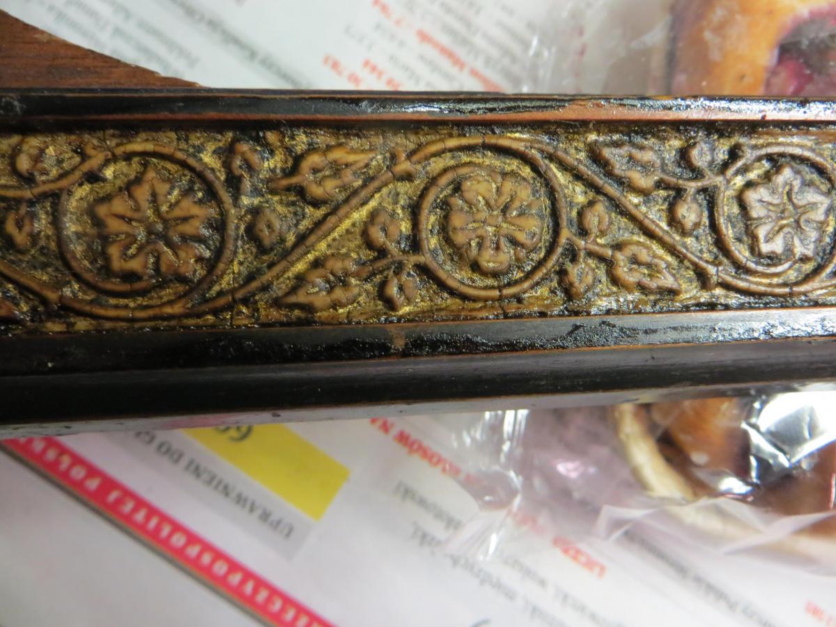 PM1122 1800 #5010 Napisano 4 Listopada 2019 Więc , z dużym opóźnieniem ( bo życie , czasami zmienia nam nasze plany , no i trzeba się jakoś pozbierać ) zabrałem się za zmywanie tych ozdób w Bagdadzie . Po jednej stronie już zmyte , a na drugiej jeszcze jest żel.Jak widać , złoto , że ,,Ho , ho,, .... chociaż dużo go w zagłębieniach , to wierzchołki ozdób są wytarte. Jednak wygląda jakby wszystko złocone , lekko matowe , jakby przybrudzone .Pierwsza myśl ... zostawić , te jakby przybrudzone złocenie.Druga ... że wierzchołki lekko przyczernić .Trzecia .... by , dopiero jak będzie na ścianie , przyjrzeć się i zdecydować . 0 Udostępnij tę odpowiedź Odnośnik do odpowiedzi Udostępnij na innych stronach