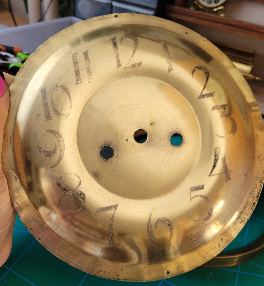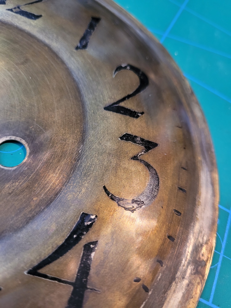 Yodek 2548 #9827 Napisano 22 Maja 2022 No i ciężka sprawa. Rozebrałam świtową tarczę - zalana od spodu jakby roztworem wapna/kredy.. Chyba ktoś bielił ściany razem z zegarem 🤔. Widać na obrzeżu, ze tarcza była jasna - złocona czy jak to się fachowo nazywa. Ciemnej warstwy/powłoki nie mogę niczym naruszyć. Spirytus tez tego nie rusza.. Pierun wie. Albo inaczej. Złoconą powlokę ktoś dokumentnie starł do gołego.. Trzebaby znów wszystko zdjąć, "ozłocić" i od nowa wyrysować indeksy .. 1 Udostępnij tę odpowiedź Odnośnik do odpowiedzi Udostępnij na innych stronach