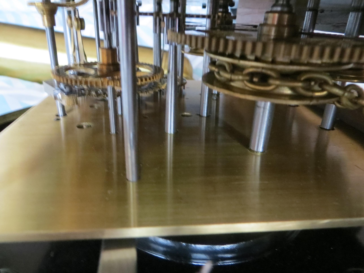 PM1122 1786 #9895 Napisano 5 Czerwca 2022 Opanowywanie - będzie większe niż zakładałem , bo doszło do małej katastrofy Więc w skrócie ; Mechanizm czysty , jak widać na zdjęciach . Zapewnienie sprzedającego , że zegar na chodzie . Co zresztą sam widziałem . Było jedno wgniecenie na krawędzi wagi . A przy drugiej , był haczyk lutowany na mosiądz , z tym , że zrobiono z niego oczko . Ustawiałem bicie , tak by stukało we wszystkie pręty i by dźwięk , nie był zbyt głośny. ( Jeszcze nad tym popracuję ) I tak na noc zostawiłem . ..... A o 7 rano pobudka - ,, łubuduuu " - waga spadła ! Aaaaa , no i wahadło też spadło ! Nic się nie urwało , nie zerwało - waga zjechała z całym łańcuchem . O co chodzi , co się stało ???? 17 minut temu, Yodek napisał(-a): Gratuluję - wygląda na to, że stojący zakupiony 😁😊✌️ Rozebrałam bębny - i a-kuku 😮. Co autor chciał osiągnąć? Po co w bębnie tych kilka różnych warstw? I ta blaszka "pośrednia" pomiędzy walcem bębna i zębatką? 🤔 Aaaa ....... myślę , że chyba chciał usztywnić ośkę ( chyba się kolebała ) -.... to tylko moje domysły 0 Udostępnij tę odpowiedź Odnośnik do odpowiedzi Udostępnij na innych stronach