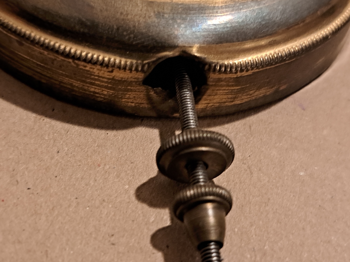 cjareck 聽聽 1502 #11126 Napisano 7 Wrze艣nia 2023 Przymierzam si臋 do wyczyszczenia pokazywanego wcze艣niej zegara HAU 聽 Na pocz膮tek postanowi艂em ruszy膰 wahad艂o. Mechanizm te偶 jest gotowy - pozwoli艂em mu si臋 "wychodzi膰" i przy odpuszczeniu spr臋偶yn nie powinno by膰 niespodzianek. Ale to na p贸藕niej. Teraz chcia艂bym spyta膰 czy wahad艂o rozebra膰 do czyszczenia? Wygl膮da na ceramiczny front i o艂owiany ci臋偶arek obite mosi臋偶n膮 blach膮. Chcia艂bym ceramik臋 przetrze膰 wod膮 z p艂ynem do mycia naczy艅, a mosi膮dz wypolerowa膰 past膮 polersk膮. Na dole jest uszkodzenie blachy mosi臋偶nej Czy dobrze kombinuj臋, 偶e jedna z tych 艣rubek powinna by膰 od wewn膮trz? Wtedy wahad艂o nie cisn臋艂oby tak mocno na t臋 blach臋... 1 Udost臋pnij t臋 odpowied藕 Odno艣nik do odpowiedzi Udost臋pnij na innych stronach
