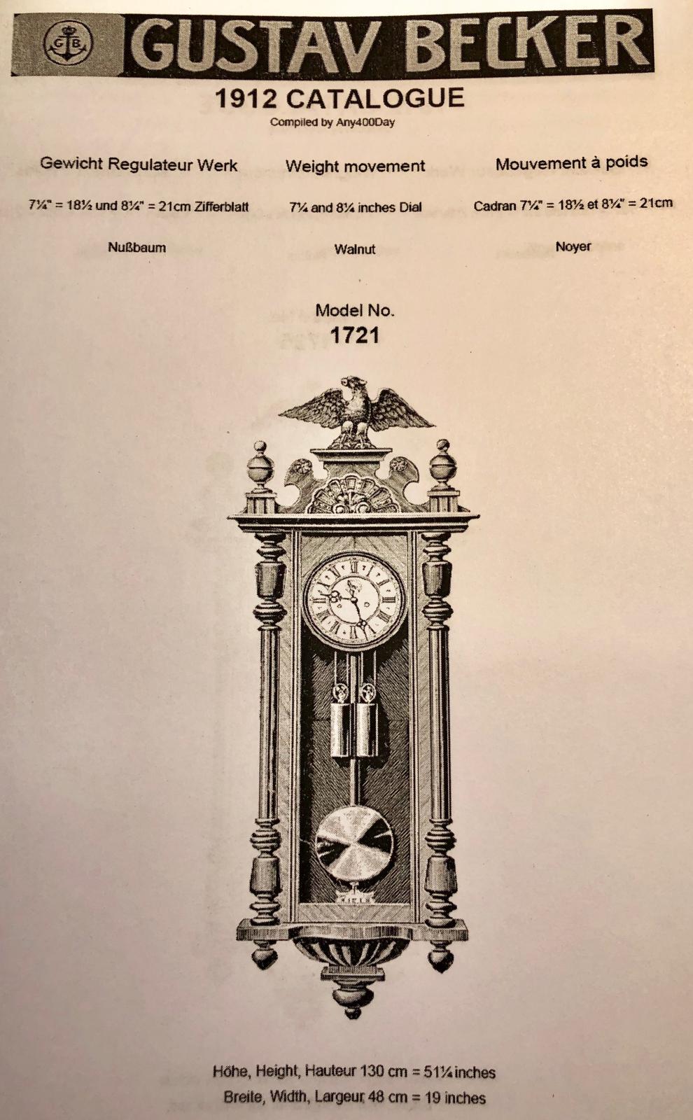 PM1122 1803 #1903 Napisano 14 Lutego 2019 Myślę, że to ten ... proszę bardzo ... Ps. konik mógł być stosowany , jest taki jak z katalogów Beckera .Dzięki !!!Faktycznie Tylko zamiast ptaka mam konika A ja szukałem , po najbardziej zbliżonych numerach .Wymiary skrzyni pasują , tyko cyferblat , pisze , że 21 cm , a mój 18,5 cm.Ale szerokość szyby , mam 21cm , tylko deseczka nad cyferblatem , jest zrobiona pod wymiar cyferblatu , czyli 18,5 cm. No , ale zegar zrobiony 10 lat później niż katalog , więc nie ma co się dziwić , że są małe zmiany .Dzięki !!! 0 Udostępnij tę odpowiedź Odnośnik do odpowiedzi Udostępnij na innych stronach