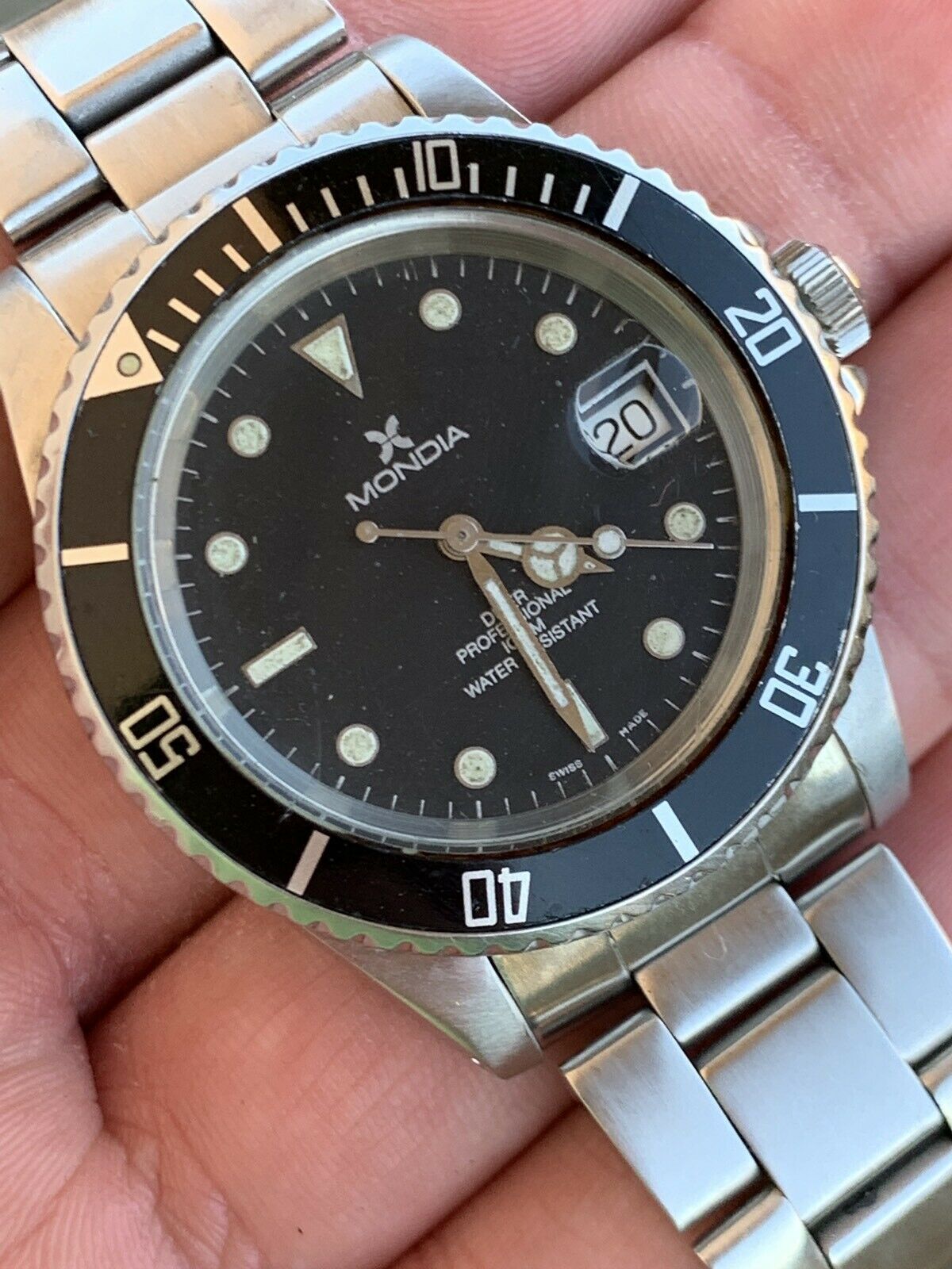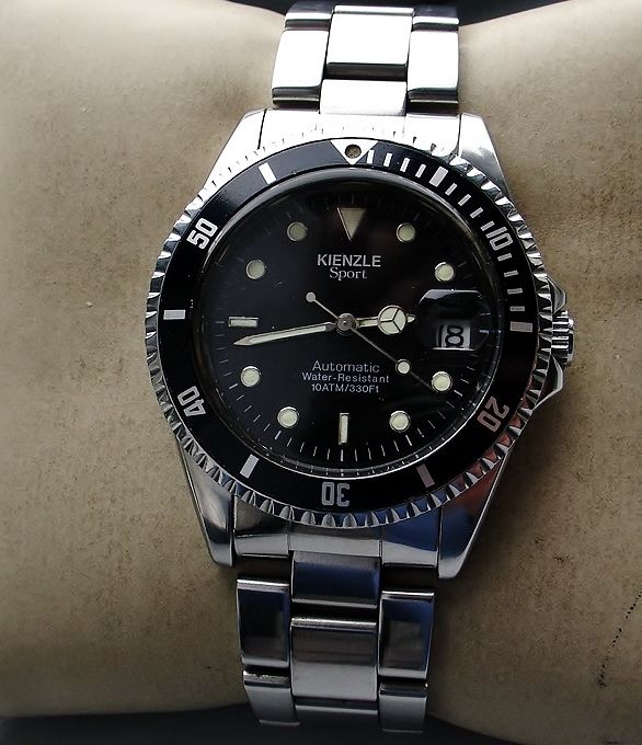 Wygląda to jak koperta submarinera plus układ tarczy oraz nawet lupa, minus wskazówki zmianione na proste i lekkie modyfikacje tarczy (trójkąty odwrócone zupełnie wbrew logice). Ale ciekawy jest bezel charakterystyczny dla roleksowskiego GMT pepsi, założony do zegarka bez funkcji GMT.