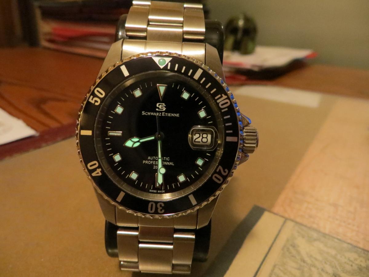 Schwarz Etienne to ciekawy przykład, jak firma wzięła właściwie żywcem Suba, po czym dała mu ładną "katedralną" wskazówkę godzinową i z wyraźnym wysiłkiem twórczym przerobiła na tarczy kółka na kwadraty :-) Powstał projekt, który podoba mi się chyba bardziej, niż sam Sub.