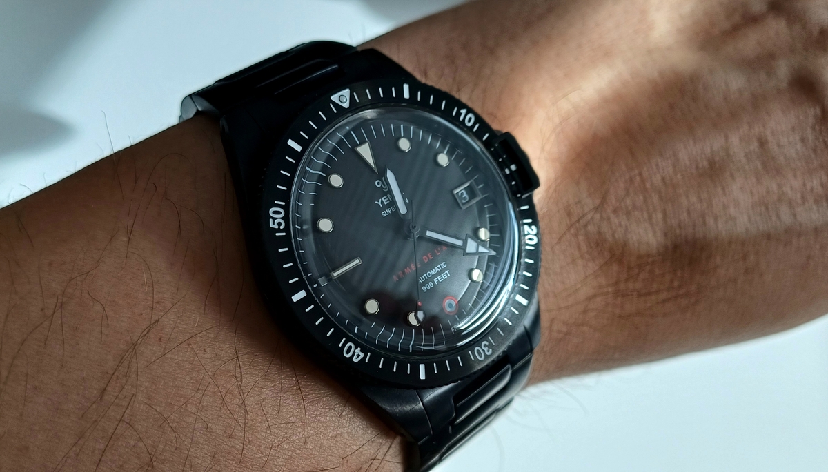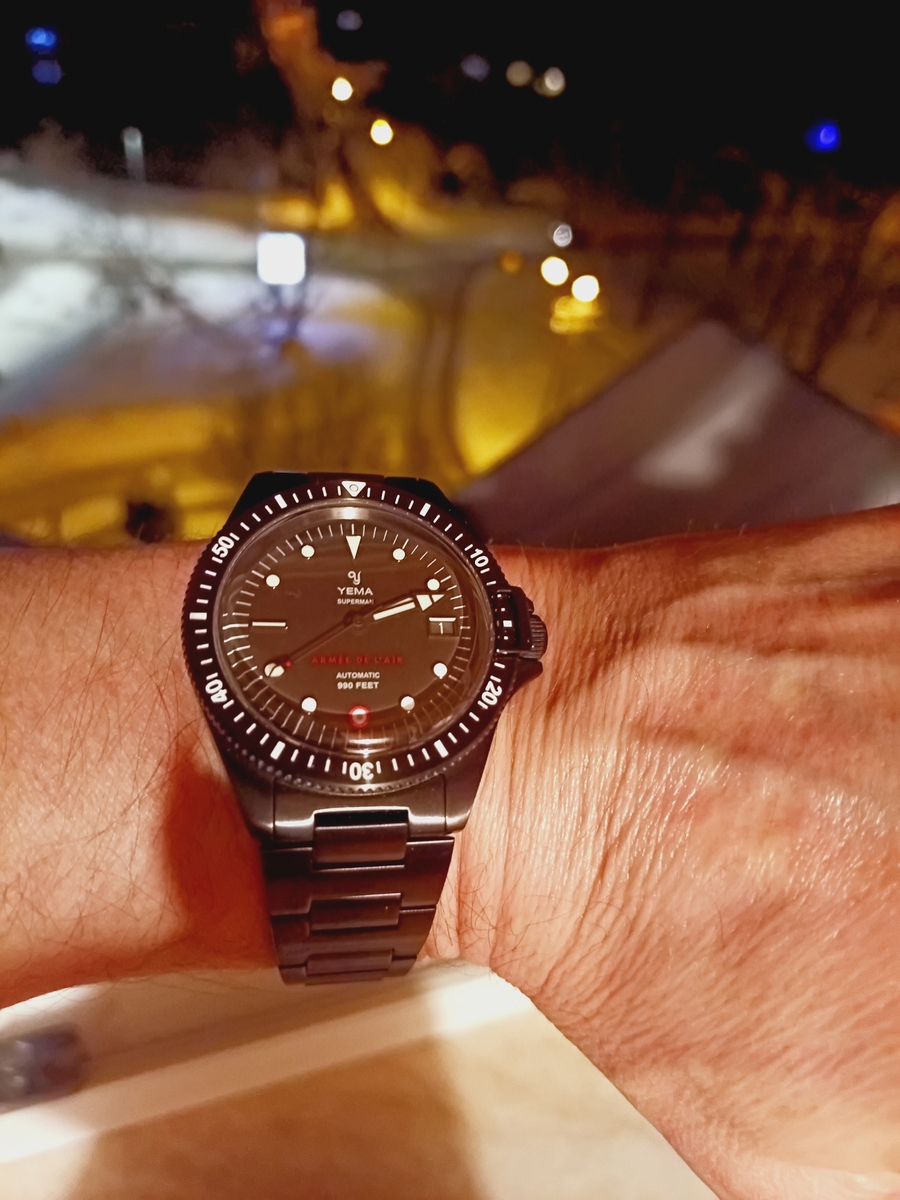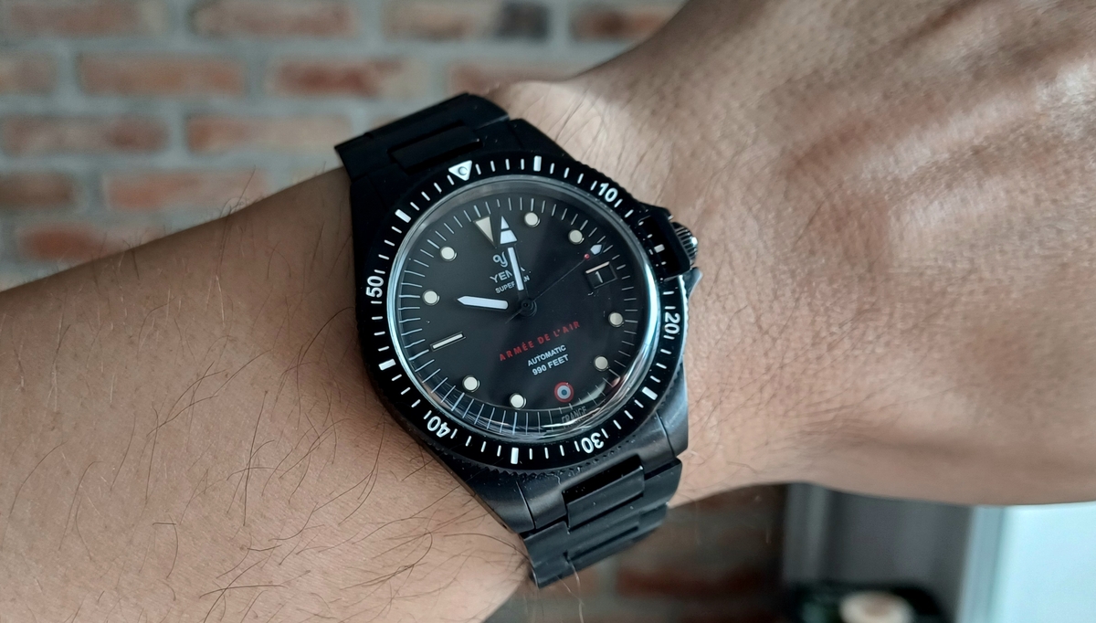 Poza tym jest francuski (a taki miał być z założenia; z napisem "FRANCE" na tarczy), militarny oraz jeszcze nurek (mój ulubiony typ zegarkow) i na dodatek wykończony w czarnej powłoce DLC, co jeszcze wzmacnia wg. mnie ten vibe wojskowego stylu. Poza tym mocne nawiązania vintage to już maksimum mych oczekiwań.
