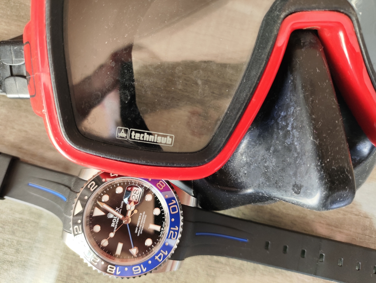 Ale mniejsza o to, mnie bardzo zaciekawił w tym zegarku napis „technisub”, raz że czcionka różni się znacząco od reszty, dwa że pasuje do tej używanej od 1962 roku przez Luigi Ferraro (legendarny pionier nurkowania i nurek bojowy) założyciela firmy -