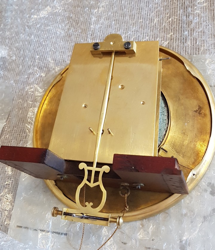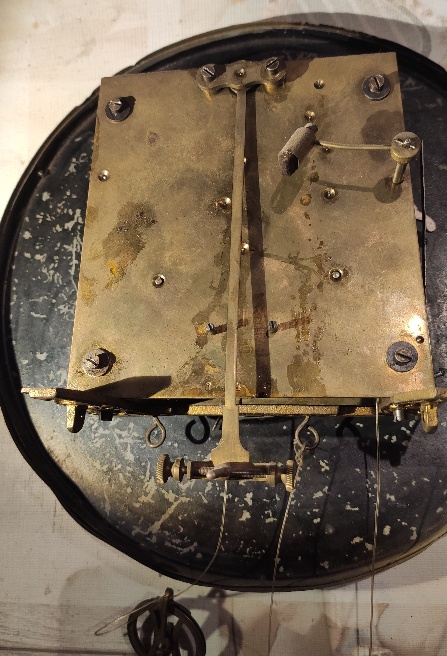 Wieszak, okucie wahadła nie numerowane, raczej nieoryginalne, soczewka też. Ale dziur po innym wieszaku nie widzę, może pod wieszakiem..