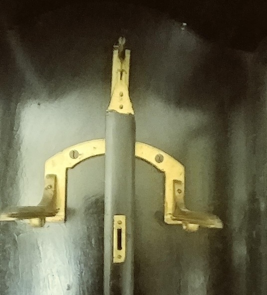 A na wieszaku jest końcówka numeru seryjnego? Dopiero teraz zauważyłem, że na zdjęciu jest jakiś taki krzywawy i nie ma łuczka u góry , jaki powinien mieć wieszak chodzika (i kwadransowca), zgodnego z obrysem płyt.