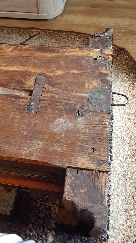 Też mi się wydawało że nie ma co przy skrzynce robić. Okazało się że zegar swoje przeszedł i skrzynia jak i mechanizm, wymagała uzupełnienia i napraw po drewnojadach, a potem była czymś pomalowana.