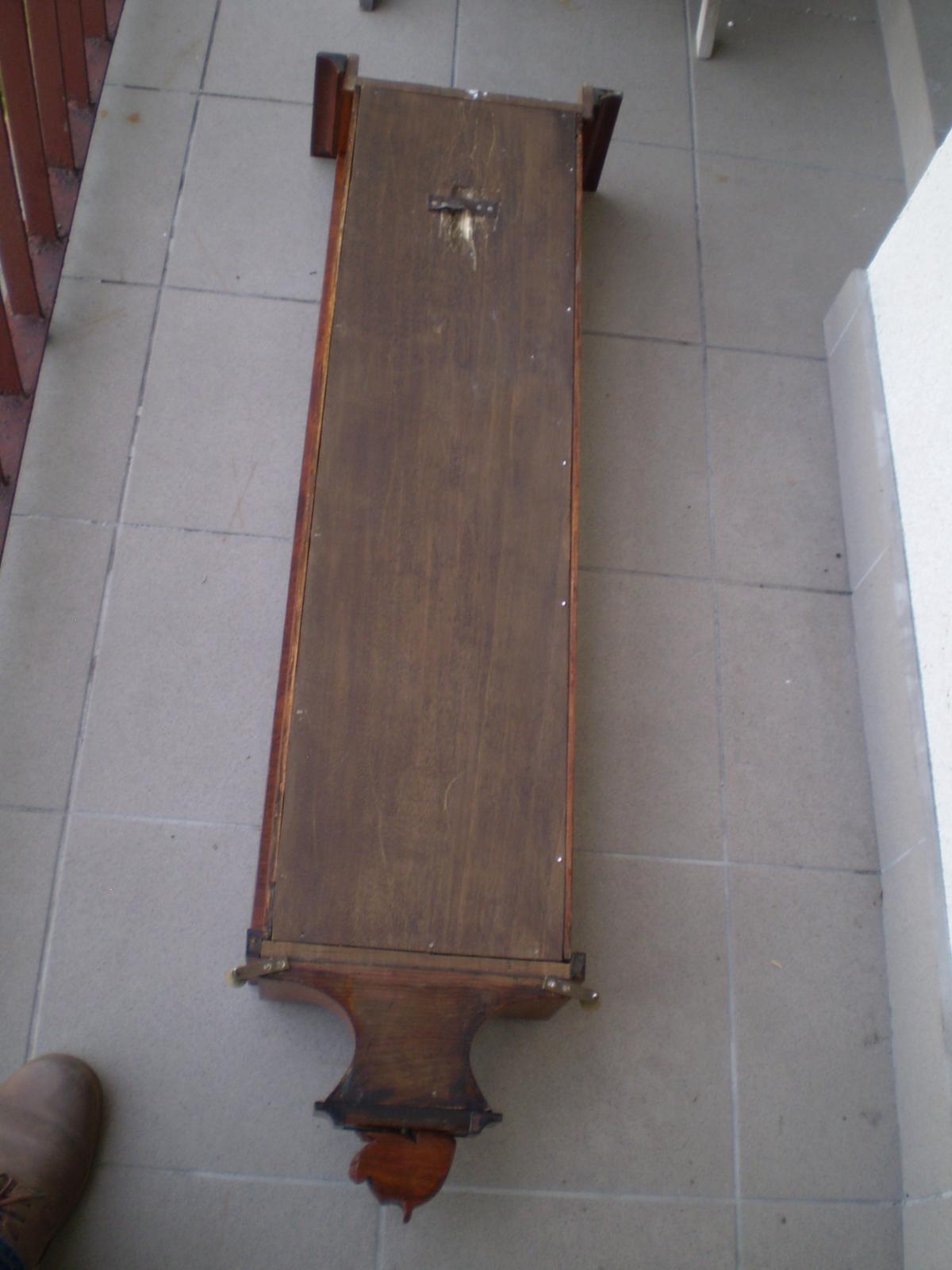 Prosta skrzynia , lekka , no i przez miesiąc pochodzi , a nie  36 godzin ( jak niektóre ) . kotwica , chyba kuta  ? Mechanizm , to jeden z tych , co trudno dojść kto go wyprodukował , bo ten chyba nieznakowany ?  No myślę , że koledzy mają jakieś sugestie co do producenta .