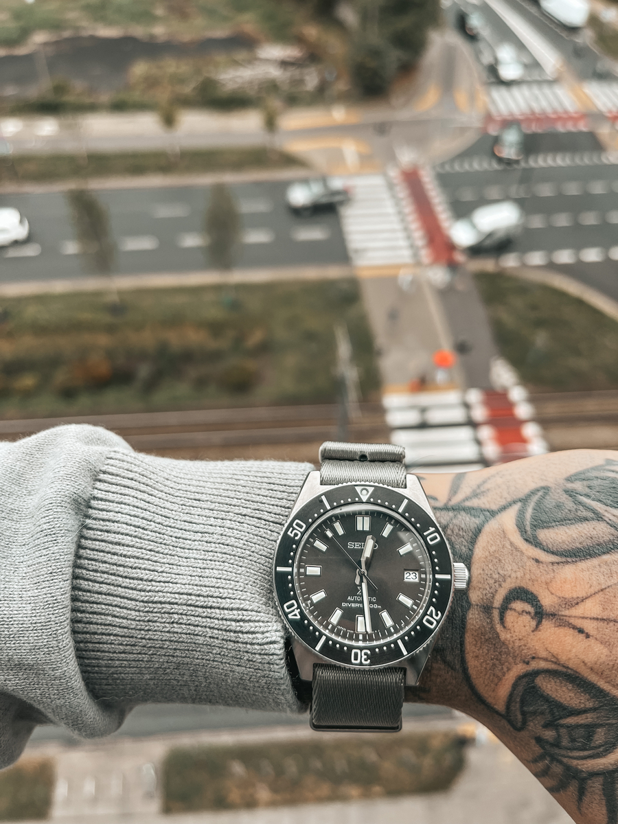 W głównym wątku poszedł post, ale tutaj też musi być! ;) Chciałem się pochwalić nowym nabytkiem - pierwsza edycja bez lumy na godzinie trzeciej, SPB143! Aktualnie zmieniłem bransoletę na szary nylonowy pasek NATO od Bark&Jack, czekam jeszcze na dostawę gumowego paska "waffle" od Uncle Seiko - docelowo chcę nosić go tak jak na ostatnim zdjęciu. Zegarek świetnie pasuje zarówno do bransolety jak i NATO czy gumowego paska, jest bardzo uniwersalny!