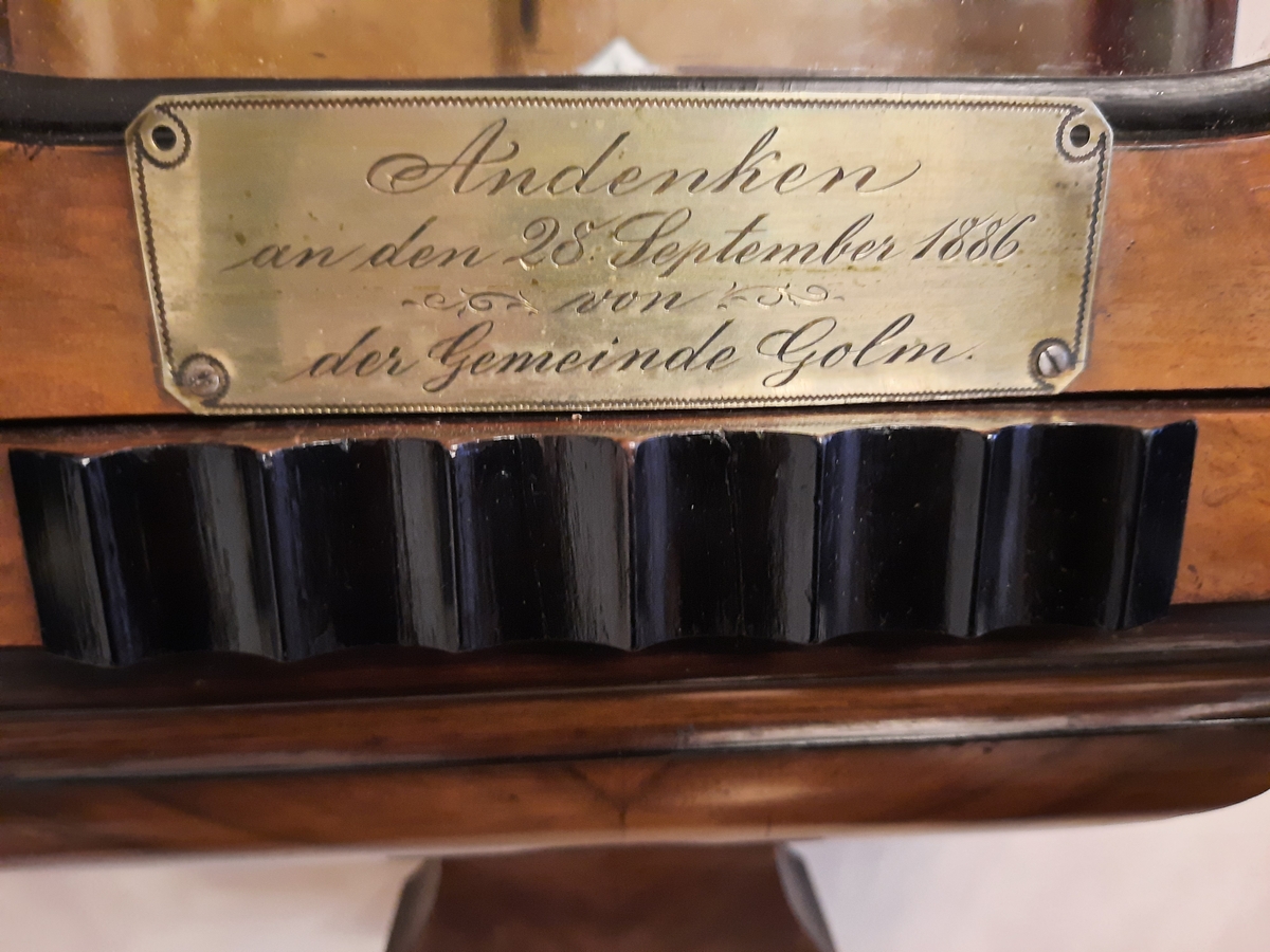 Yahagi 2285 #444 Napisano 25 Lutego 2023 No rewelacja Bajmar - to Twój zegar ? czy masz link do źródła ? fajnie byłoby uzyskać zgodę na prawa do użycia photo ... To 3ci zegar w bardzo bliskiej numeracji. Ten jest 28 604 Mój jest 28 656 A ten pokazany powyżej 28 665 Moja skrzynia powinna być więc identyczna w zasadzie z tą otabliczkowaną. Dwa szczegóły zwracają uwagę: Naklejony pod tabliczką falisty grzebień (u mnie tak samo). Uważam, że to cecha rozpoznawcza stolarni Fortuna. Od momentu, gdy zaczęli mieć własny warsztat - wszystkie rakietoplany w jakich montowane były ich mechanizmy są w takich właśnie skrzyniach... z naklejanym, a nie frezowanym grzebieniem. Najstarsze, przed czasami własnej pracowni są jeszcze 'normalnie'. Młoteczek gongu. We wszystkich 3 przypadkach jest 'pełny'... bez miejsca na skórkę. Przy 28814 wszystko wraca do normy. Widocznie to był krótki experyment... albo z jakiejś przyczyny skórek zabrakło i trzeba było reagować (??) No bardzo zacny i cenny przypadek. W mojej tabelce wychodzi produkcja 1885. Tabliczka jest rok późniejsza. Napis po niemiecku, dotyczy gminy Golm pod Berlinem. Może by i datowanie przeszło... a może trzeba delikatnie przesunąć... 3 Udostępnij tę odpowiedź Odnośnik do odpowiedzi Udostępnij na innych stronach