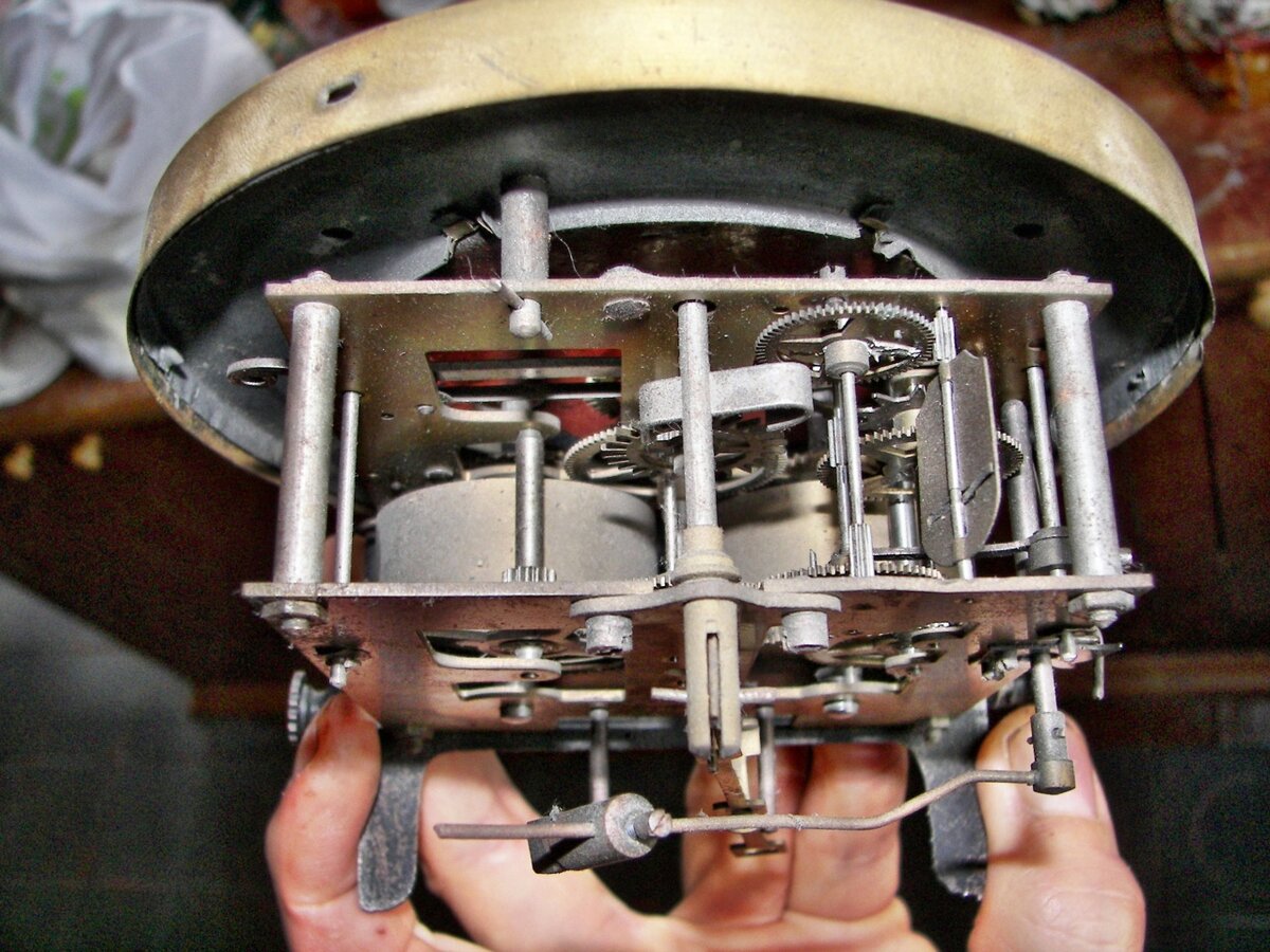 Zegar sprawny i chętny do współpracy. Tarcza przypięta na 'wzorcowe' szpilki, a nie jakieś druciki. Gong brzmi naprawdę 'mocno'.