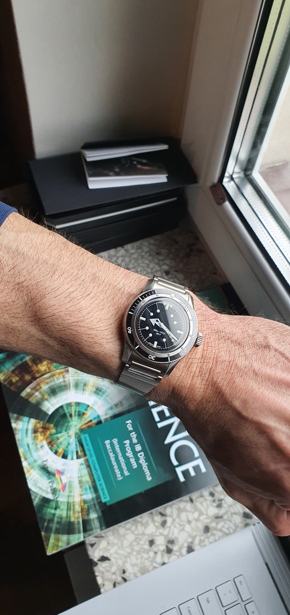 Dla mnie duże znaczenie ma rozmiar koperty, w przedziale 36-38mm. Ale tu 39mm nosi się jakby był mniejszy, że względu na bezel, jak to w diverach.