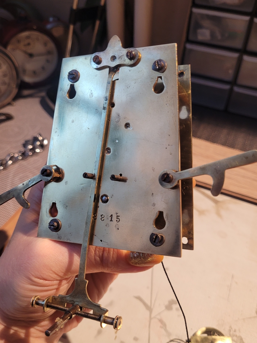 Lamela 346 #371 Napisano 10 Czerwca 2022 Z niejakim żalem poddałem temat kwadransowego FG 😠. Rozmawiałem ze sprzedawca pytając o szczegóły "odnowienia" skrzyni (sam też miał nienajlepszą opinię i myśli o jej wymianie), a potem ze znanym nam fachowcem od renowacji, gdzie wysłałem trochę otrzymanych zdjęć. Wniosek był jeden - to może być trudno wyprowadzić, zwłaszcza że faktura wskazuje na okleinę klonową. A więc jasny brąz z żółtymi łatkami - trudno mieć nadzieję, że jakaś bejca nie przebarwiła tego wgłąb. Pewnie by trzeba było całość od nowa odtworzyć zabarwiając na jakiś pośredni, możliwy do uzyskania kolor lub polubić tę wiśnię. Pozostaje dylemat - czy antykiem / oryginałem pozostaje zegar tak odmienny od pierwowzoru - trudno mi rostrzygnąć. Na pocieszenie - zakończyłem "projekt Resch" przywrócenia do życia dosyć poturbowanego wiedeńczyka i zawisł już na honorowym miejscu w salonie. Ciekawa, dosyć nietypowa skrzynia, nieźle pasuje do innych, nieco późniejszych secesyjnych mebli, a w dodatku ma ważną dla domowników cechę - nie bimba 🙂. Mechanizm sygnowany, o numerze 76351 (może ktoś ma tabelę datowania - byłbym wdzięczny) wymagał trochę doróbek (ograniczniki widełek - były zwykłe śrubki, braki wkrętów), ale ogólnie w niezłym stanie i ładnie chodzi, z niezłą amplitudą. Zwróciły moją uwagę bardzo cienkie czopy kół, aż miałem pewną obawę przy polerowaniu, aby nie uszkodzić. Tak w ogóle prawie pewien jestem, że to składak, i to niezbyt profesjonalny. Mam wręcz wrażenie, że po skompletowaniu nie był uruchomiony i gdzieś sobie leżał. Nie - Reschowe są jak widać,sanki i wieszak, okucie wahadła też. Chyba że takie też były kiedyś stosowane - nie wiem. Sporo zabawy dała mi skrzynia - dół był zwichrowany i musiałem sporo szlifować mocowanie zakończenia brody, inaczej opierał się nim o ścianę. Wahadło miało tendencję do ocierania się o plecy i musiałem dofrezować trapezową podkładkę pod zawieszenie, wskazówki zaczepiały o mosiężne przelotki na tarczy i trzeba było trochę nimi pomanipulować - no trochę dużo jak na jeden chodzik... Ale już żyje, a satysfakcja tym większa 😄. A do brzucha i tak, poza mną, nikt mu nie będzie zaglądał... 3 Udostępnij tę odpowiedź Odnośnik do odpowiedzi Udostępnij na innych stronach