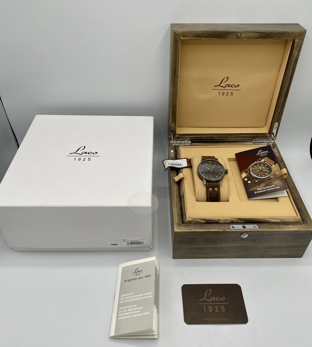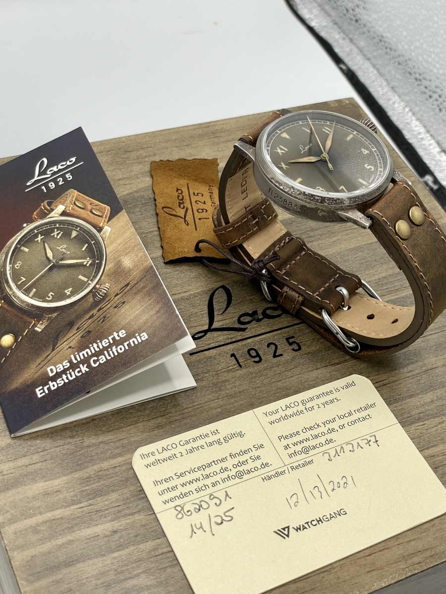 Pierwszego listopada 2017 roku firma Laco zaanonsowała króciutką serię limitowaną przedziwnego modelu. Króciutką, bo składającą się zaledwie z 25 egzemplarzy. Przedziwnego modelu, bo zegarek Laco ref. 862091 oprawiony był w 42-milimetrową kopertę Fliegeruhr Original Erbstück, ale miał tarczę z mieszanymi indeksami, zwaną powszechnie "California"! Chyba wszyscy się zgodzą, że to coś dziwnego: połączenie obudowy, która w sposób absolutnie doskonały naśladuje kształt kopert drugowojennych Beobachtungsuhrów Laco z tarczą stworzoną przez Rolexa jeszcze w latach 40. ubiegłego wieku. Pomysł ten był efektem współpracy Laco z niemieckim wydawnictwem Ebner Media Group GmbH & Co. KG, publikującym m.in. czasopisma "Uhren Magazin" czy "Chronos". Zegarek nie był dostępny w firmie Laco czy u jej dystrybutorów, lecz można go było kupić tylko i wyłącznie we wspomnianym wydawnictwie, płacąc 1990 EUR.