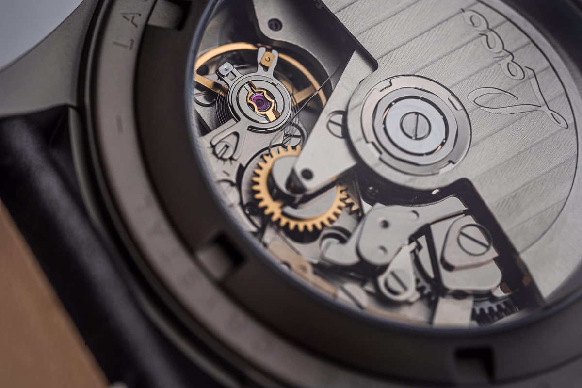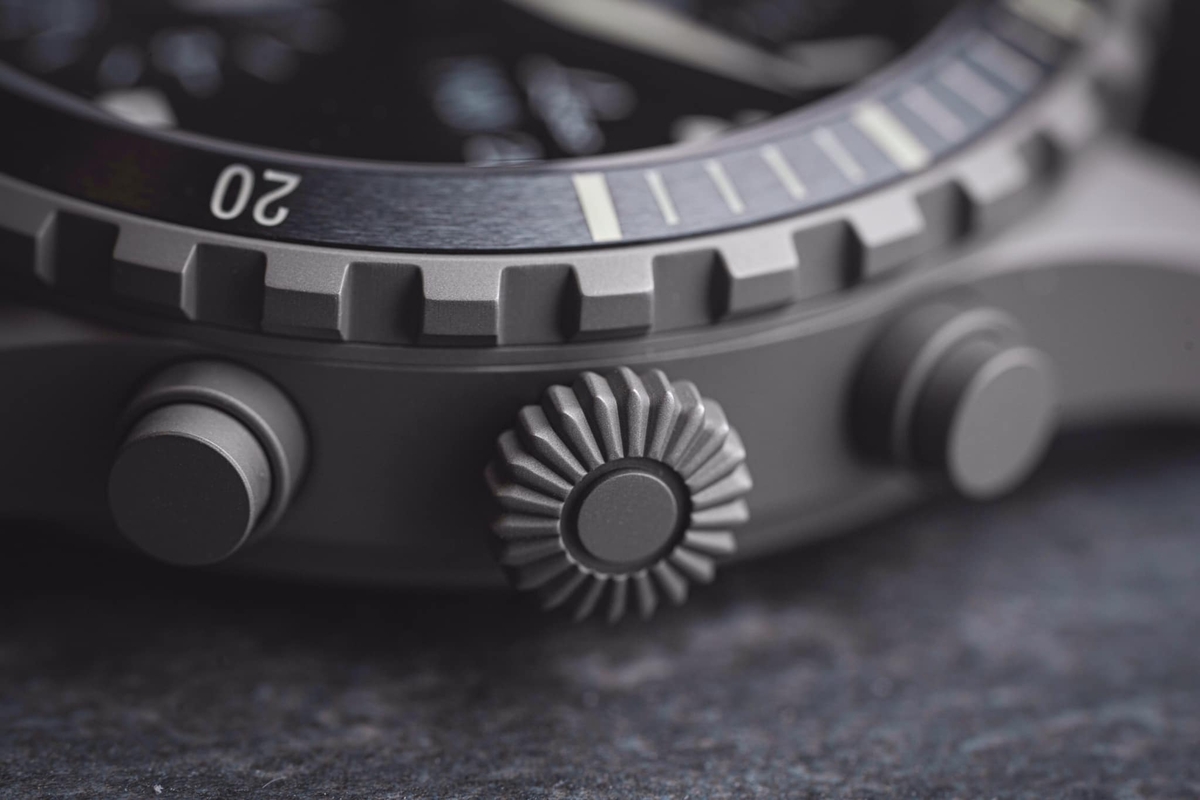Średnica 43 mm, grubość 14 mm, WR100, koperta matowo szkiełkowana, automat chrono, wypukły szafir z obustronnym antyrefleksem, szerokość paska 22 mm. Tak  się prezentuje: