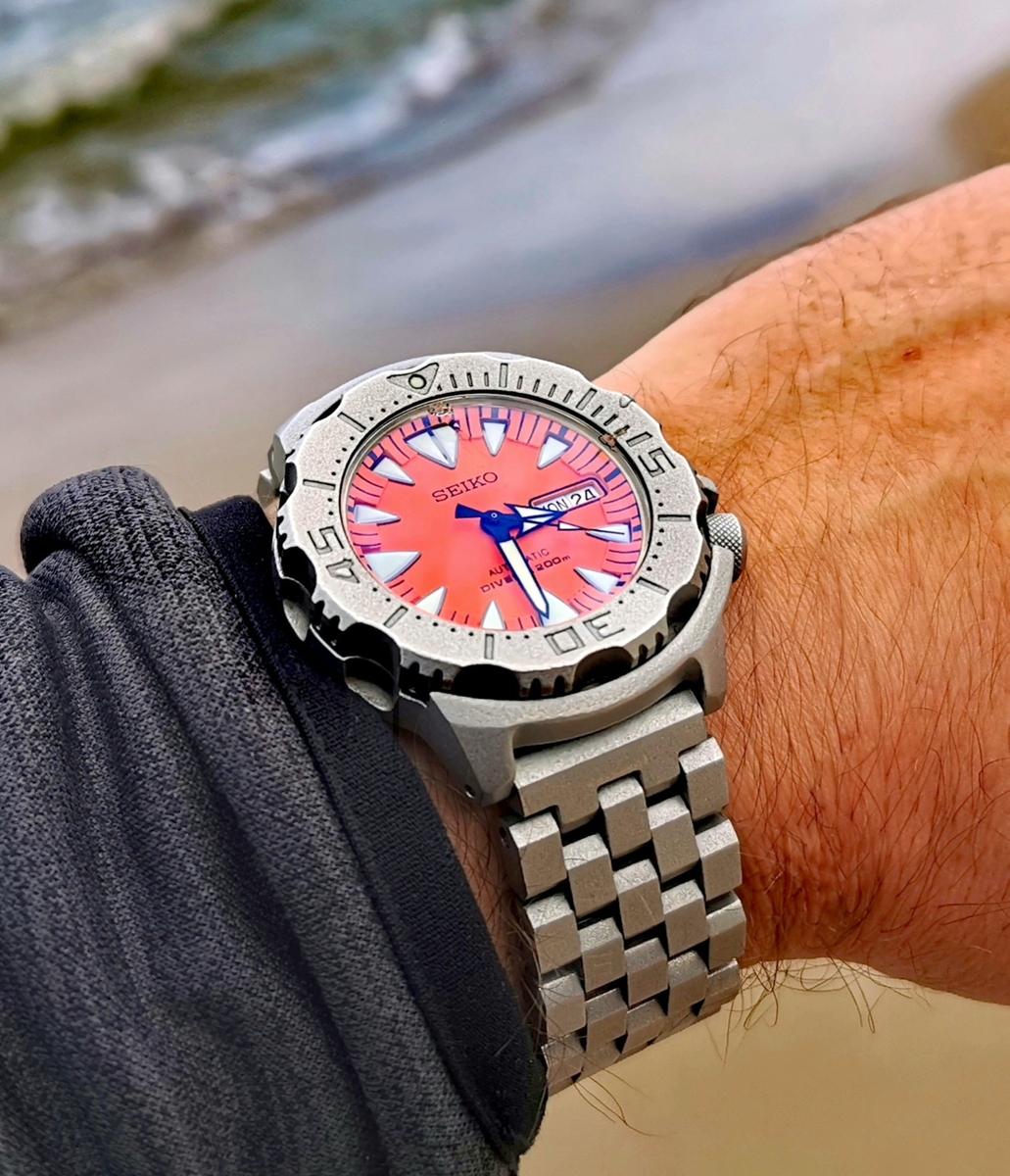 Ogólnie jest to mocny podwodnik z zaworem helowym. Zegarek sprzedaję na firmowym pasku przyciętym do nadgarstka około 18 cm.