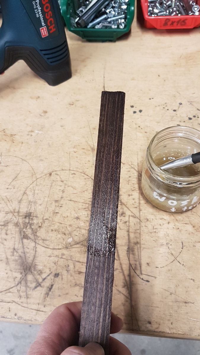 specjalnie zostawiłem część bez wosku, aby było jakieś porównanie barw.