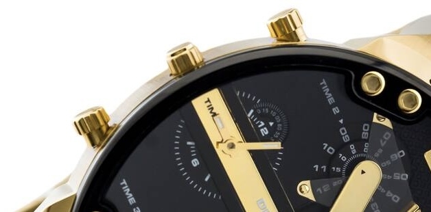 Diese Diesel Mr. Daddy 2.0 Chronograph Uhr für  Herren ist das perfekte Accessoire zum tragen oder verschenken. Ihr Gold 57 mm Rund Gehäuse kombiniert mit dem bequemen Gold Armband aus  Edelstahl garantiert, dass Sie diese atemberaubende Uhr kompromisslos genießen werden. Angetrieben von einem hochwertigen Quarz Uhrwerk und wasserdicht bis 3 bars, läuft Ihre Uhr stets weiter. Diese lässige und moderne Uhr ist perfekt für alle Arten von Casual-Aktivitäten, Indoor-Aktivitäten oder täglichen Gebrauch, es ist auch ein tolles Geschenk für Familie und Freunde. -Diese Chronograph Uhr verfügt über eine Kalenderfunktion: Datum, Stoppuhr, 2 Zeitzonen, Leuchtzeiger Diese hochwertige Uhr hat ein Edelstahl Gold Band ( 21 cm Länge und 28 mm Breite) mit einer Faltschließe mit Druckverschluss Gehäusedurchmesser: 57 mm,Gehäuse Höhe: 14 mm, Gehäusefarbe: Gold, Zifferblattfarbe: Schwarz