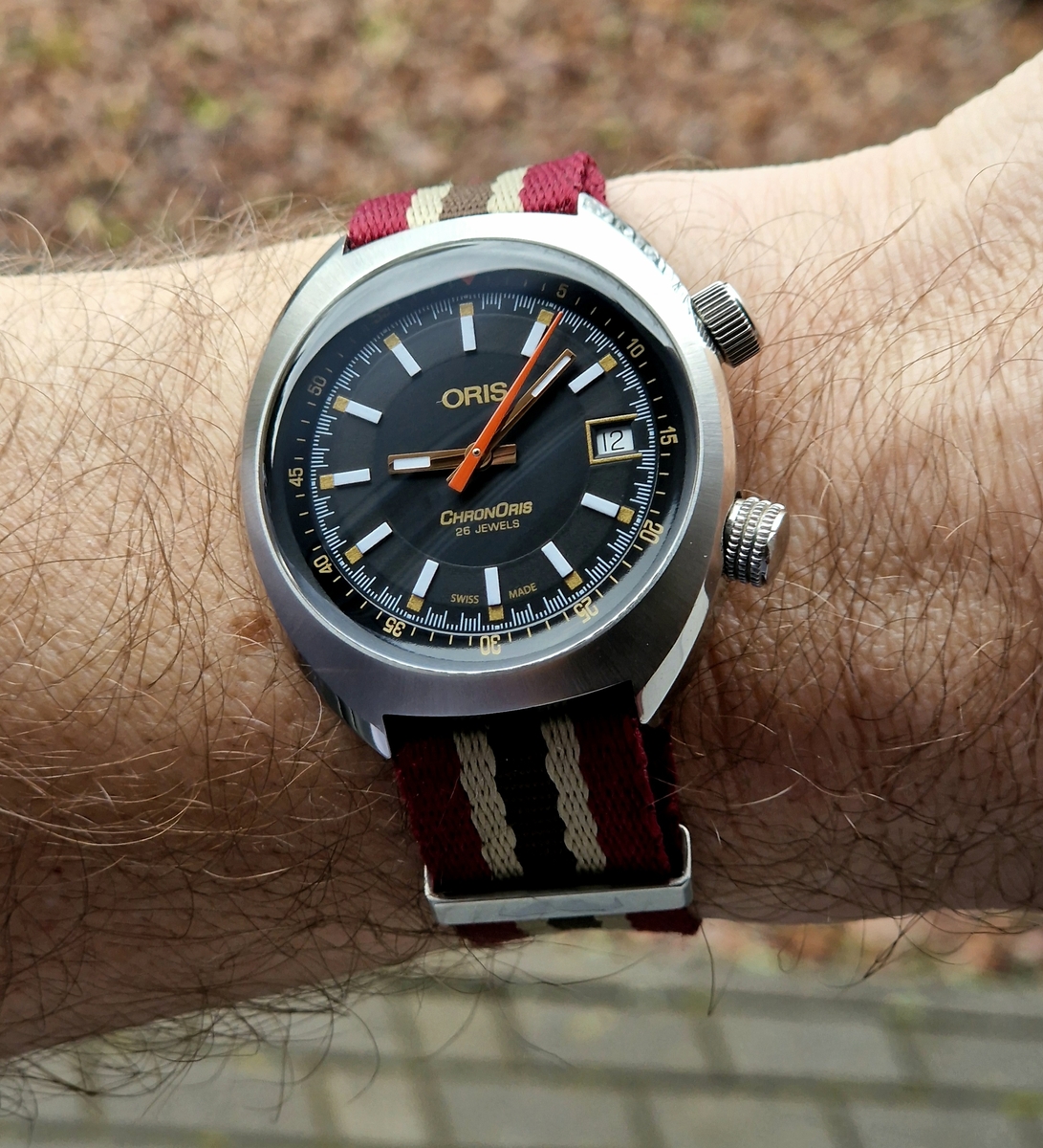 Zegarek jest na chodzie, choć wymaga regulacji. Koronka chodzi z oporem.