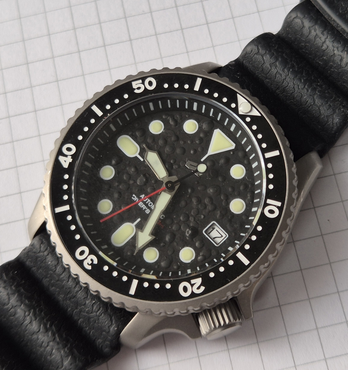 Rewelacyjnie działający bezel, słabo działający gwint w koronce (tytanowe gwinty mają specyficzne działanie z powodu tarcia). Na szczęście koronki rzadko używam... bo automat... bo często noszę... bo po regulacji nawet dokładny... 🙂