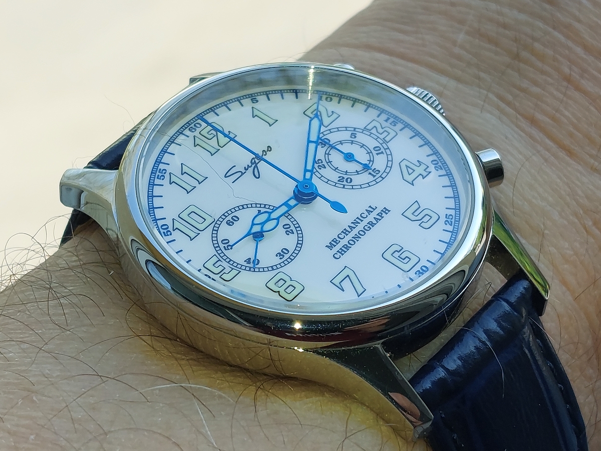 Mam podobny model Sugessa i jest dosyć masywny. Nie układa się idealnie na nadgarstku, ale wykonanie jak to w Sugessie, lepsze niż San Martin.