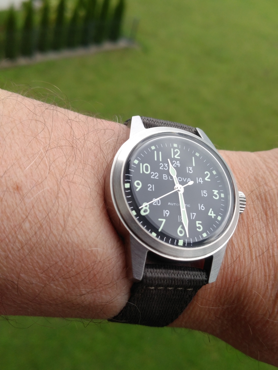 Klasyczny natowski, czyli 17,5mm. W tych starych zegarkach niestety jest ten problem, że trudno dziś dobrać jakiś ciekawy pasek/bransoletę bo większość albo 16mm albo niepełne 18, a ciekawe projekty mają zwykle sporo więcej. Na razie przez jakiś czas będzie bonklip, potem pewnie przejściowo jakieś NATO, a docelowo NATO 6B lub AF0210, jak Rob wróci do Europy. Zegarki nauczyły mnie cierpliwości i rok czekania to dla mnie chwilka. Długo czekałem na ładny egzemplarz W10 to poczekam i na pasek do niego.