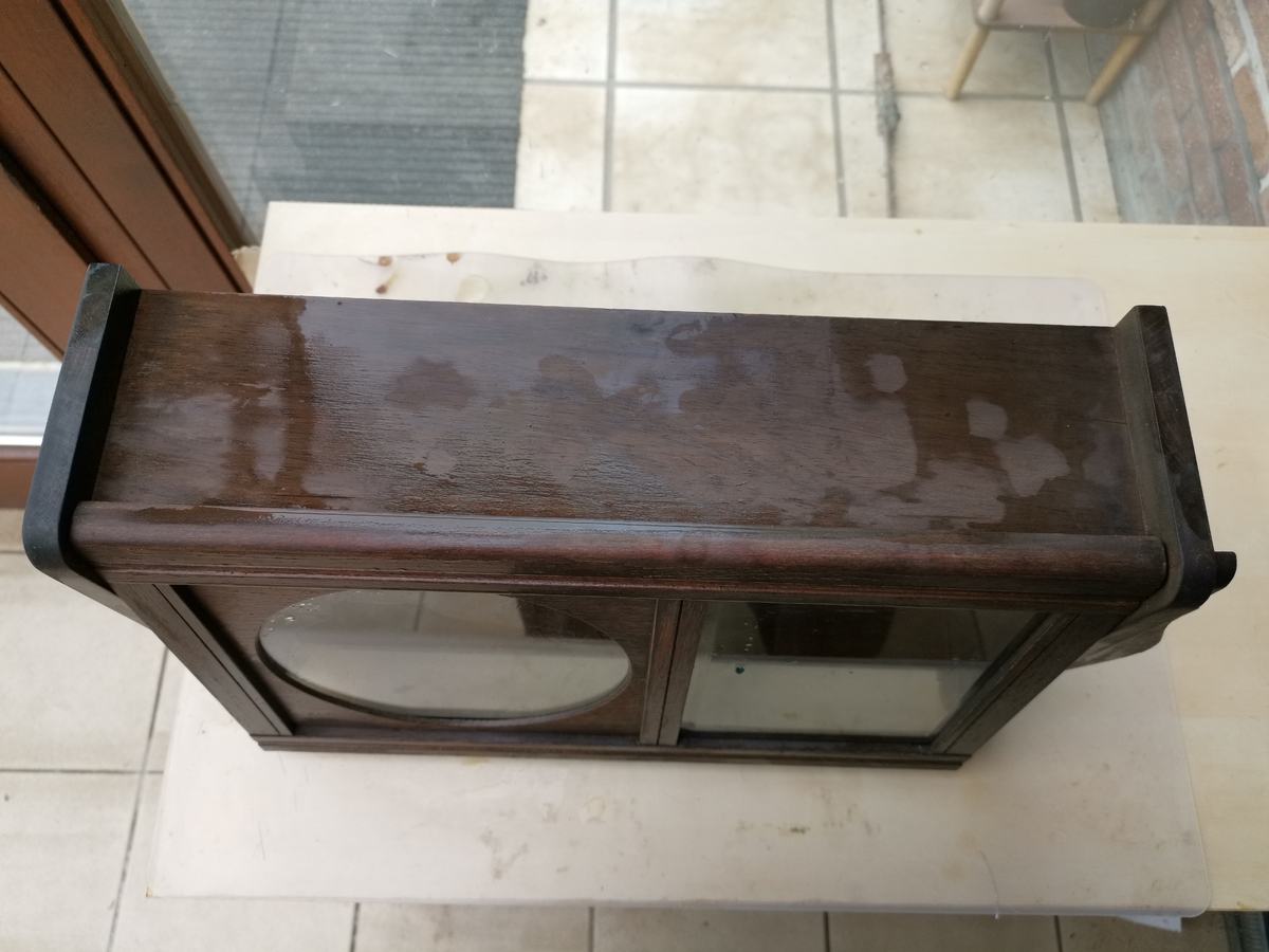 Skrzynka tego zegara chyba jest bejcowana, ale ktora bejca ? jest ich chyba kilka, a wiec ten preparat, ktory pokazalem w poscie powyzej oparty na terpentynie i parafinie powinien zadzialac.