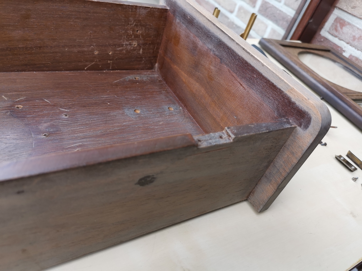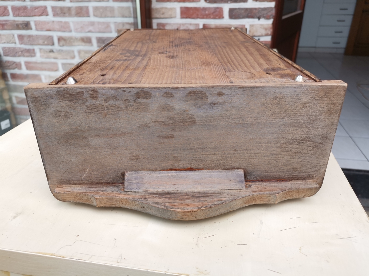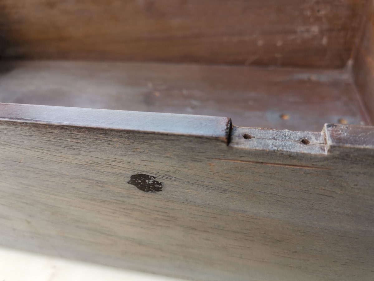 Wygląd skrzynki sugeruje, ze ktoś już wcześniej potraktował ja "jakimś" CIEMNYM mazidłem. Natomiast zdjęcie gory skrzynki w poście #15 po prawej sugeruje, ze oryginalny kolor był jaśniejszy i widoczne słoje.