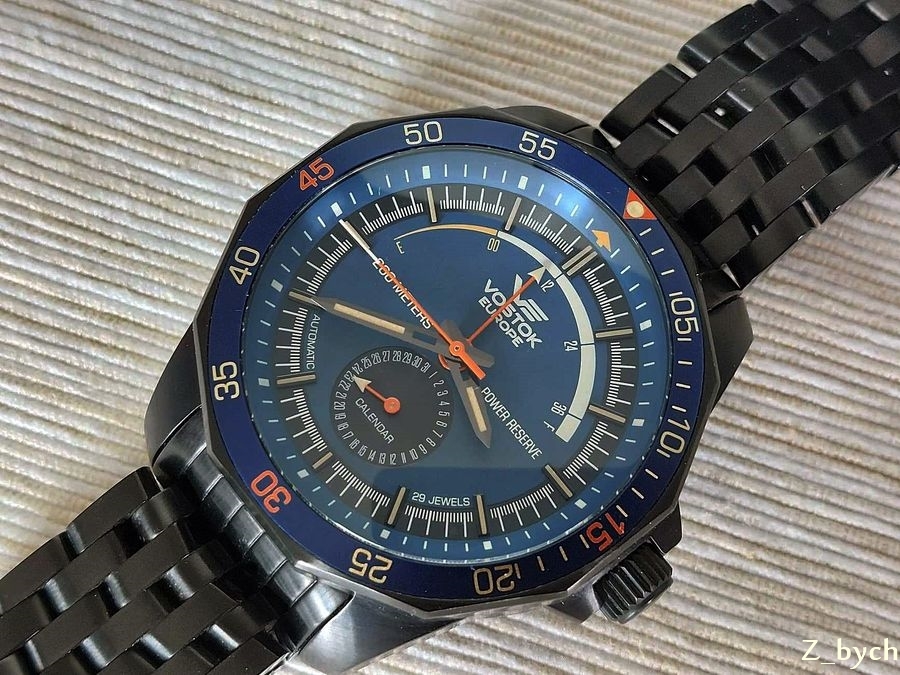 Cena 1700 zł + koszt wysyłki Stan 8/10 Kolejny mały diver dla nurkujących za biurkiem, ale tym razem w kopercie z mosiądzu i, jakby tego było mało, czarno-brązowej kolorystyce. Ventus to marka należąca do znanego, lubianego i robiącego od lat super fajne i super ciekawe zegarki Zelosa. Zelosy od lat są znane ze swej bardzo wysokiej jakość ale także na oryginalnego designu. Ventus Northstar został zaprojektowany z myślą o zegarkach nurkowych z lat 50-tych. Bardzo czytelna tarcza i niepozorna koperta nadają całości surowej elegancji. Northstar to zegarek, który mieści się pod mankietem koszuli, a jednocześnie jest wystarczająco wytrzymały, aby zabrać go na nurkowanie. Koperta jest wykonana z mosiądzu – materiału, który patynuje się podczas noszenia. To sprawia, że każdy zegarek jest inny. Tarcza jest wykończona szlifem słonecznym, pięknie przyjmującym i odbijającym światło . Tarcza jest dwupoziomowa, na zewnętrznym okręgu umieszczono eleganckie, złote indeksy, wypełnione Superluninową, całość uzupełniają fasetkowe, proste, złote, dość duże wskazówki. Na tarczy brak niepotrzebnych ozdobników i „literatury”, gruba luma daje efekt długiego i mocnego świecenia. Mimo że zegarek nawiązuje wyraźnie do stylistyki z lat siedemdziesiątych XX wieku, został jednak zaprojektowany i wykonany z wykorzystaniem najnowszych osiągnięć technologicznych, mimo niewielkich grubości zegarek jest w stanie wytrzymać ciśnienie wody 300 m. Aby upamiętnić jego zabytkowe korzenie, dekiel ma wzór hełmu do nurkowania, który został wytłoczony, aby nadać mu niesamowity efekt 3D. Wypukłe (double domed) szkło szafirowe zapewnia odporność na zarysowania podczas nurkowania pod wodą i pod biurkiem. Jednokierunkowy bezel ze 120 kliknięciami zapewnia precyzyjne odmierzanie czasu a jego ceramiczny wkład daje pewność, że on także się nie porysuje. Wewnątrz niezawodny automatyczny mechanizm Seiko NH35 zapewnia, że zegarek będzie działał przez lata bez konieczności wymiany baterii a jego serwisowanie nie przysporzy niepotrzebnych kosztów i problemów. Warto zaznaczyć, że każdy zegarek ma swój numer a każda seria jest limitowana i nie była nigdy powtórzona. Limitacja tego modelu to 300 szt. a mój ma nr 299 Specyfikacja: Koperta: mosiądz Wodoodporność: 300 m Wymiary: średnica 40 mm, 45 mm od ucha do ucha )L2L), 13 mm grubości Szerokość ucha: 20 mm Mechanizm: Seiko NH35 automatyczny Szkło: szafir z podwójną kopułą i wewnętrzną powłoką AR Świecenie: szwajcarska Superluminova C3 Wkładka bezela: ceramiczna Pasek: kauczukowy typu „tropic” z logowaną, mosiężną klamerką Komplet: rolka z dwoma kieszeniami, skórzany pasek Horween „Distressed” Stan: zegarek jest używany, ale w bardzo dobrym stanie, jedynie równa patyna na mosiężnej kopercie i klamerce świadczy, że zegarek nowy nie jest. Patynę można bez najmniejszego problemu usunąć samodzielnie. Tylko po co? Taki urok mosiądzu Mechanicznie zegarek w stanie nienagannym, dokładność wyższa niż podana prze producenta mechanizmu. Pasek skórzany nie był używany.