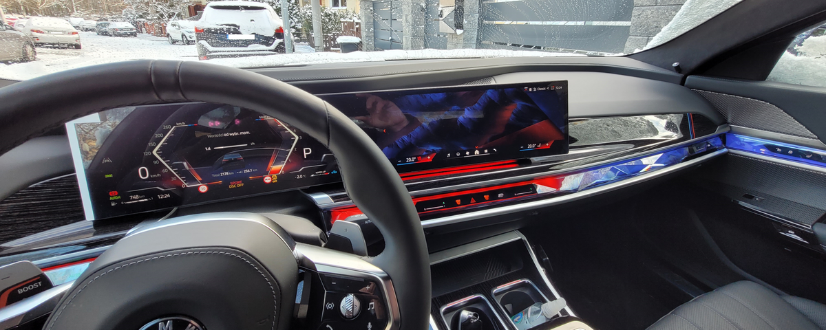 BMW w modelu G70 ma jedną platformę, która mierzy 5391mm długości, 1950 mm szerokości oraz 1544 mm wysokości - co po umiejscowieniu się za kierownicą sprawia wrażenie małego SUVa. Ciekawe doznanie. Zupełnie inna perspektywa, aniżeli np dla modelu Audi S8, który też miałem przyjemność testować. S8 mierzy 1475mm, to niby niewielka różnica, ale pozycja za kierownicą jest znacznie niższa - bardziej sportowa i równie atrakcyjna, bo to kwestia tego, czego oczekujemy od samochodu.