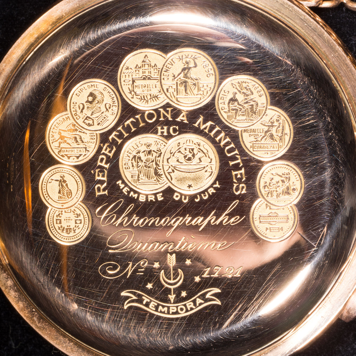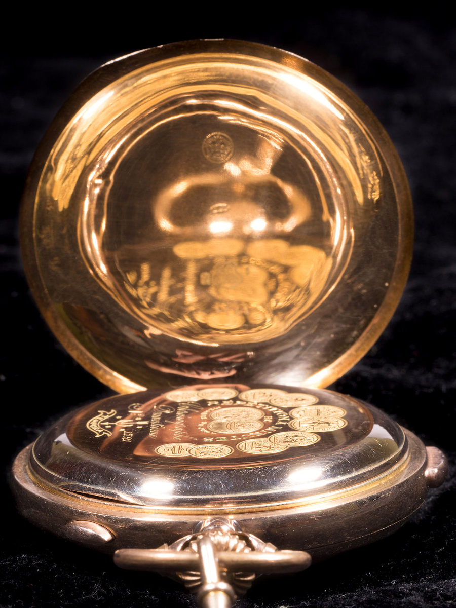 - zegarek to faktycznie produkt firmy Le Phare, 14-karatowe złoto, repetier (godzina/kwadrans/minuta). Wyprodukowany ok. 1915 r.;