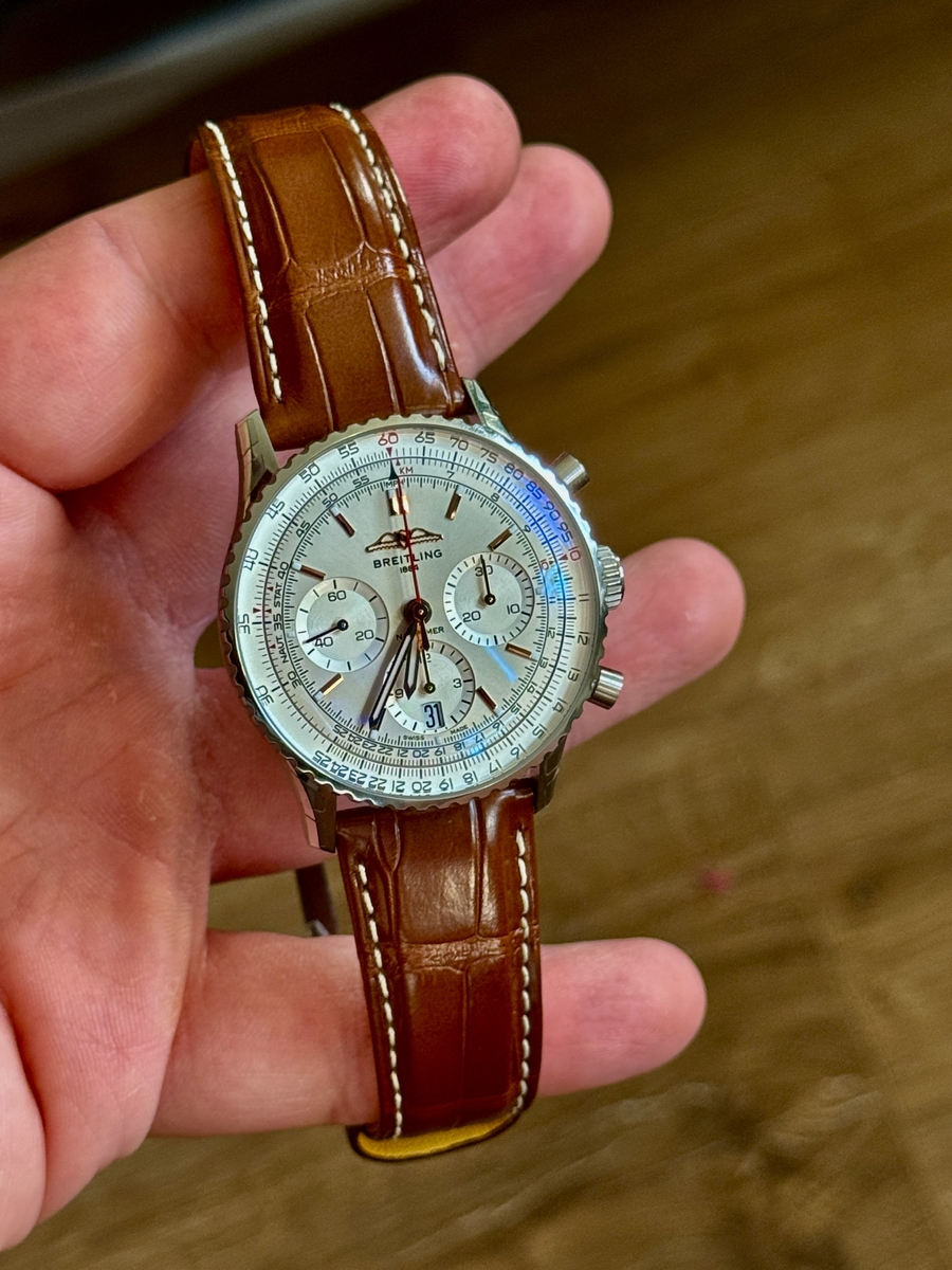 AdiU 243 #1 Napisano 1 Lipca 2025 (edytowane) Na sprzedaż całkowicie nowy zafoliowany Navitimer w wersji 41mm najnowsza referencja ze złotymi indeksami i wskazówkami na pasku z krokodyla kaliber B01! Zegar z 2025r na przedłużonej 8 letniej gwarancji z PL salonu! Super Cena: 24 000 zł (taniej nie znalazłem tej wersji) katalog 42 000 zł Edytowane 3 Lipca 2025 przez AdiU 0 Udostępnij tę odpowiedź Odnośnik do odpowiedzi Udostępnij na innych stronach